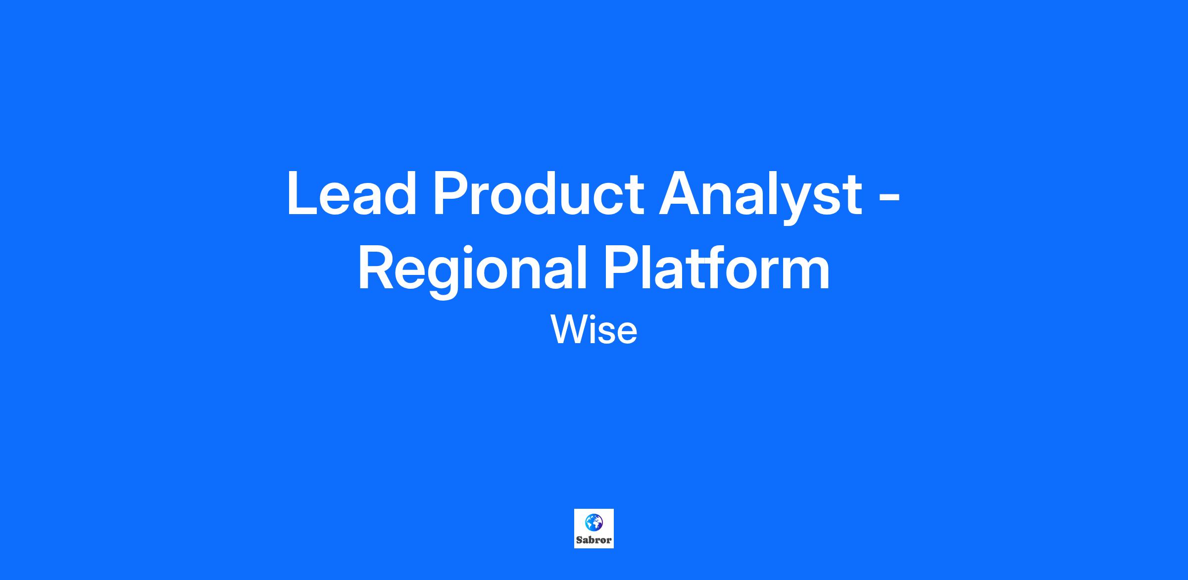 Lead Product Analyst - Regional Platform