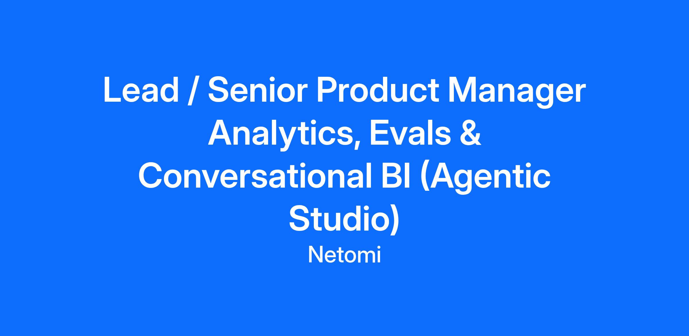 Netomi is hiring a Lead/Senior Product Manager to own the Analytics, Reporting, and Conversational BI product surfaces in Agentic Studio—the measurement and trust layer that helps enterprises build, operate, and continuously improve agentic customer experiences across chat, mobile, email, messaging, and voice/IVR. In mission‑critical environments (airlines, retail, banking, gaming), analytics is not a “dashboard”; it’s the control plane for reliability, governance, and outcomes. You will lead the productization of end-to-end analytics including real-time operational monitoring, historical reporting, LLM quality/evaluation (autoevals), observability for tool calling and workflows, and Conversational BI (natural language exploration over a governed metrics model). This role requires deep domain fluency in data science, data preparation, analytics systems, and the realities of LLM-driven systems (probabilistic outputs, evaluation, safety/guardrails, and runtime tracing)—combined with strong product craft, design sense, and delivery execution. This is an opportunity to lead with data at the frontier: partnering with internal Data Science and Engineering teams while collaborating with frontier model and cloud ecosystem partners to deliver best-in-class analytics and governance for enterprise agentic AI.