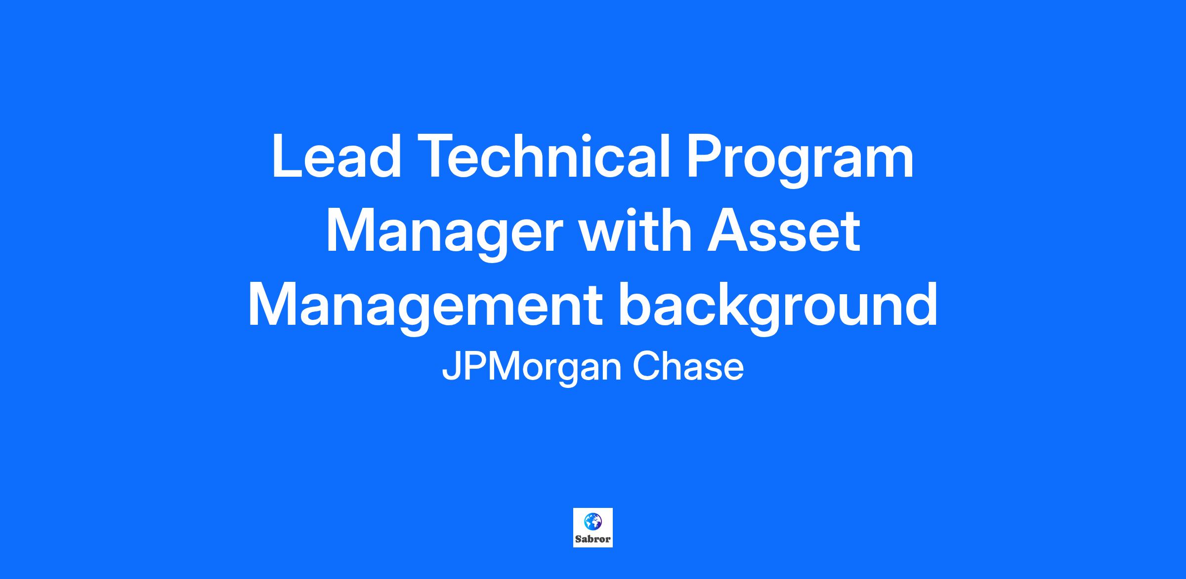 Lead Technical Program Manager with Asset Management background