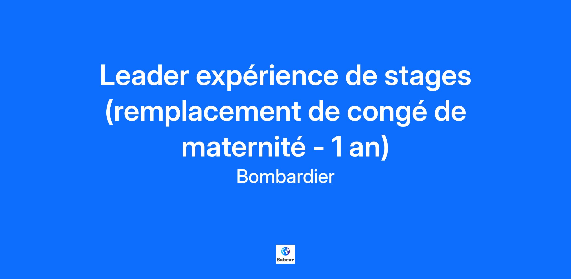 Leader expérience de stages (remplacement de congé de maternité - 1 an)