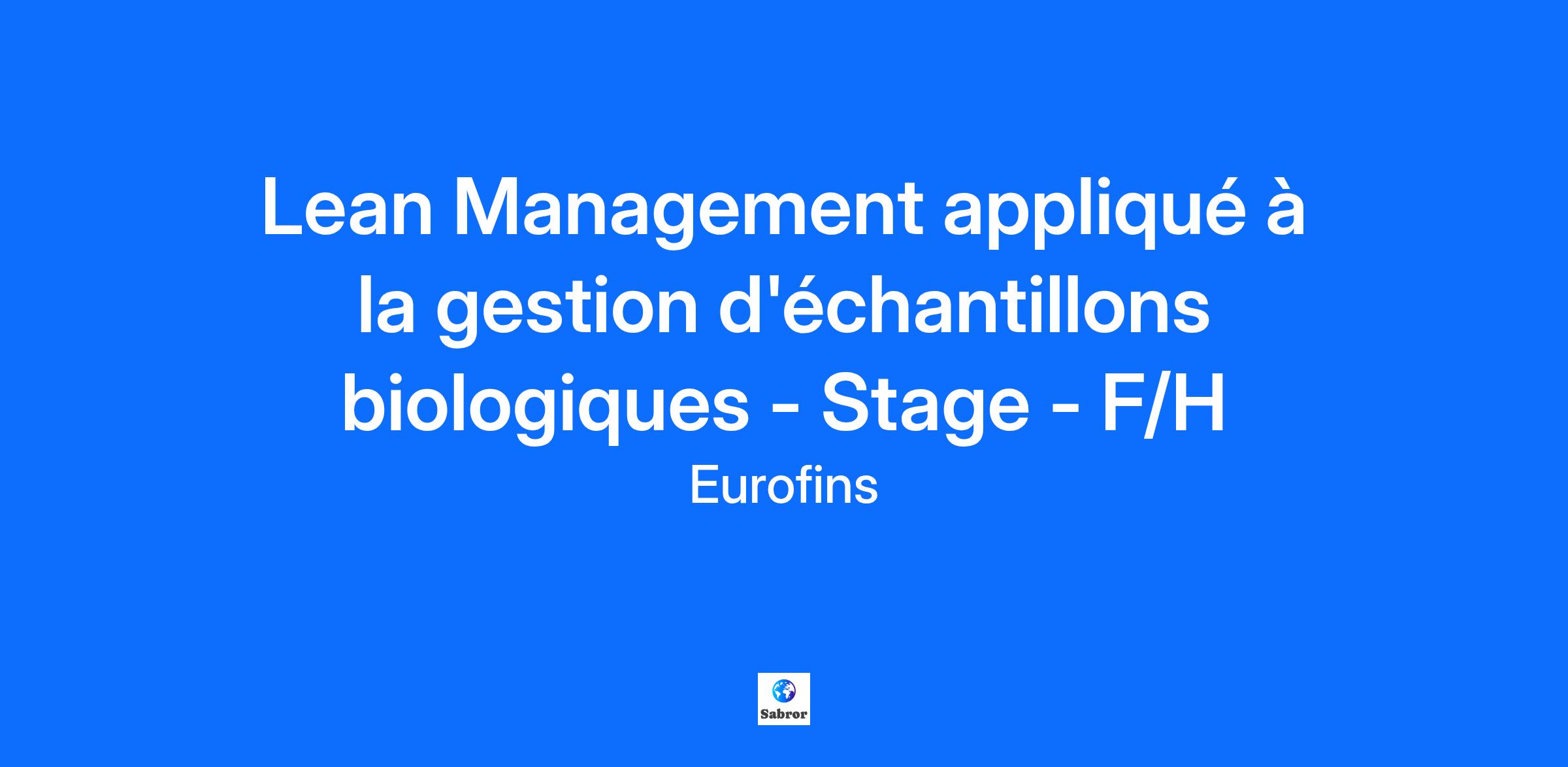 Description de l'entreprise EUROFINS SCIENTIFIC (6,9 milliards d’euros de chiffre d’affaires en 2024 et figurant parmi les valeurs les plus performantes d'Europe depuis 20 ans), est le leader mondial des services bio-analytiques. Avec environ 65 000 collaborateurs à travers un réseau entrepreneurial et décentralisé de plus de 950 laboratoires dans plus de 1 000 entreprises et dans 60 pays, Eurofins dispose d’un portefeuille de plus de 200 000 méthodes d’analyse. Les laboratoires qui composent le Groupe Eurofins sont engagés dans une recherche permanente de l'excellence pour fournir à leurs clients des résultats d’analyse fiables dans les meilleurs délais. La fiabilité et la précision des données analytiques permettent à nos clients de prendre les décisions appropriées au regard des risques encourus, tout en répondant aux normes de qualité et de sécurité en vigueur. Nous partageons tous la même mission au sein du réseau Eurofins: contribuer à la santé et la sécurité de tous ! #TestingForLife Intégré au réseau Eurofins, le laboratoire Eurofins Biomnis, fort de ses 3 000 examens disponibles, a fondé sa réputation sur le développement continu de nouveaux tests et la réalisation d’analyses à forte valeur ajoutée médicale. Eurofins Biomnis intervient dans tous les domaines de la biologie et les examens sont exécutés à l’aide des techniques les plus récentes, qui nécessitent le plus souvent des mises en œuvre complexes, des experts hautement qualifiés et des équipements sophistiqués. Rejoignez les équipes dynamiques d’Eurofins Biomnis, le leader français de la biologie médicale spécialisée ! Description du poste Au sein de la Business Unit EVE-BSL, spécialisé dans le domaine du biobanking et des études cliniques liées au marquage IVD-R, vous participerez au développement industriel de cette Business Unit sur notre site de Lyon. Les thématiques sont les suivantes : gestion de projets, mise en place du suivi de production (KPIs) et monitoring, optimisation de process, management de la performance. En immersion sur le terrain, avec l'appui méthodologique des différentes équipes, vous utiliserez avec rigueur les outils de management de projet et du Lean pour mener à bien vos missions sur des sujets stratégiques pour la Business Unit. La mise en place du suivi de production (KPIs, etc.) et son monitoring est un projet majeur et à forte valeur ajoutée pour cette Business Unit. Il sera intimement lié à l’optimisation des process souhaitée et au management de la performance : Voici quelques exemples des missions qui sont également confiées au chef de projet Lean : Management visuel pour la gestion des stocks de la biobanque Construction d’un management visuel pour chaque secteur et mise en place de briefs d’équipe pour assurer l’ancrage du standard managérial Pilotage des chantiers 5S, planification et suivi du planning, suivi financier, valorisation des gains et gestion des suggestion du personnel Animation d’ateliers de résolution de problèmes Et bien d’autres projets car l’amélioration est continue… ! Les atouts de ce stage : - Equipe impliquée et motivée par la transformation Lean - Fort potentiel d'amélioration, enjeu critique pour la Business Unit - Process passionnants, complexes et bien adaptés aux outils Lean Qualifications Stagiaire en BAC+4/5 avec une spécialisation en amélioration continue et de l’appétence pour le secteur de la santé/biologie. Dynamisme, autonomie et qualités relationnelles seront les clés de la réussite de cette expérience. Vous aimez la philosophie du Lean et désirez la mettre en pratique rapidement, sur des projets concrets à forte valeur ajoutée, ce stage est pour vous ! Informations complémentaires Date de prise de poste : Février 2025 Durée du stage : 5-6 mois Plage horaire : du lundi au vendredi Localisation : Lyon 7ème Autres informations : Restaurant d’entreprise Prise en charge des transports en commun à hauteur de 60% Prime vélo (Forfait mobilité durable) Diverses actions : participation à des évènements sportifs et caritatifs, organisation de journées de sensibilisation (handicap, inclusion), challenges internes, etc.