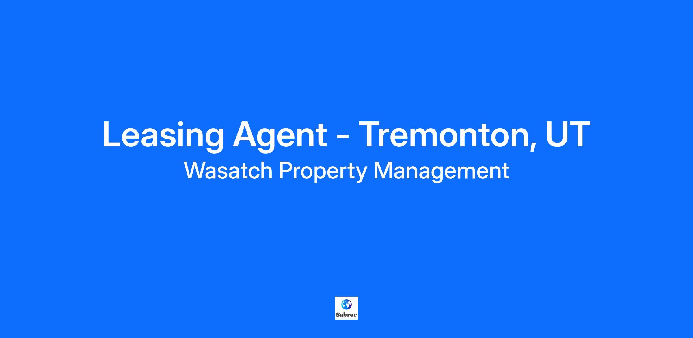 At Wasatch Property Management, our Leasing Agents are the heartbeat of our community, playing a vital role in connecting people with their ideal apartment homes. They possess a unique blend of versatility, personability, and sales expertise, fueled by a genuine passion for fostering meaningful relationships. As Leasing Consultants, they walk alongside customers, establishing rapport and inspiring trust as they guide residents in choosing our community as their cherished home. What you’ll do: Connect with prospective and current residents in a friendly and professional manner. Manage the leasing process, helping prospective residents through the application and background process. Show off our community! Schedule and conduct tours of available units. Coordinate with maintenance staff to address tenant requests and solve potential apartment issues. Who you are: A sales-driven professional with a proven track record in customer service, leasing, and sales. A people person who thrives on building rapport and delivering exceptional service. A problem-solver who listens actively, prioritizes effectively, and stays proactive. A motivated team player who leads by example and makes the best use of down time. Flexible with scheduling, including weekends, to meet leasing demands. What we're looking for: Previous Sales or Customer Service experience Strong communication and interpersonal skills Ability to work independently or as part of a team. Ability to work flexible hours, including weekends. Benefits and Pay Range: The pay range for this position is $15 - 17.25 per hour depending on experience, plus monthly bonus potential! Candidates starting pay will be determined based on job-related skills, experience, and qualifications. Health, dental, and 401(k) program/match Paid time off for vacation, sick days, and holidays Apartment Rent Discounts, bonuses, and recognition for a job well done! At Wasatch, you’re more than an employee—you’re part of a team dedicated to excellence. We invest in our team members with the resources, training, and culture needed to excel. This is your opportunity to build a rewarding career where your skills and contributions make a real impact. Ready to Join Us? Apply today and take the next step in your sales and leasing career with Wasatch Property Management. Wasatch Property Management is an Equal Opportunity Employer and promotes a drug-free workplace. Pay Rate Type: Hourly We're changing the lives of our customers and employees one experience at a time. If you are looking for a purpose, we encourage you to apply. See what we do http://www.wasatchgroup.com/