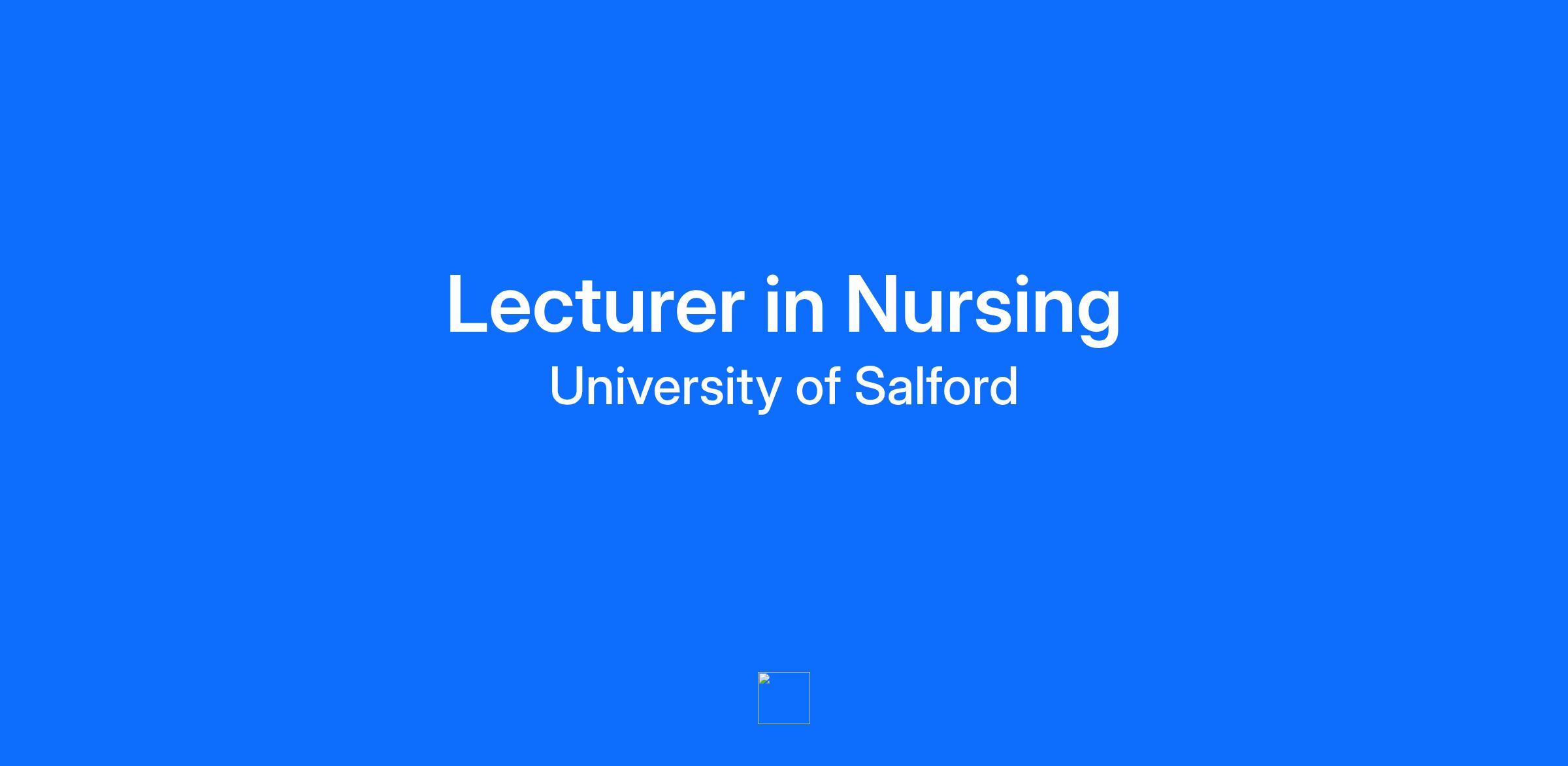 Opportunity Overview The University of Salford has a new opportunity for a passionate new Lecturer in Children and Young Peoples Nursing (CYPN). We are dedicated to delivering exceptional education for Children and Young People's Nursing, and our teaching team are committed to providing a high-quality learning experience for our students. We want you to join our team and work with us, creating the professionals of the future. Our team successfully educate and develop students for careers in the modern world caring for children and families and our students regularly gain employment in their speciality upon graduation. You will be expected to teach and assess on the undergraduate children and young people programmes, building on our strengths and developing new ideas to meet the demands of a changing world. The ideal candidate would have links with healthcare organisations or would be willing to develop these to support and enhance the teaching experience. This post is full time (1.0FTE). We promote an on-campus experience for our students; therefore, your role would be aligned to this student commitment. We will likely be holding interviews week beginning 26th January 2026. If you require more information, you can email our Head of Nursing, Trudy Cowan A bit about the School of Health and Society With over 8,000 students we are the largest School at the University, with colleagues and students from all over the world. We are a forward-thinking, dynamic school with a commitment to lifelong learning and real-world impact. We offer programmes across a range of subject areas including counselling, nursing and midwifery, allied and public health, psychology, sociology, social work and social policy, policing and criminology, and sport. Through our interdisciplinary research network and three research centres, we focus on improving health, social and individual outcomes. Our award-winning facilities give students real-world experience and we have plans to further develop our estate to build on this success. We are part of the global healthcare community and collaboration is at the heart of what we do, working with a wide range of industry partners locally, regionally and globally. By joining us, you will become part of a wide network of professionals, sharing knowledge and expertise. Like us, you will be passionate and committed and will be part of our ambitious journey, to shape the health professionals, community and social leaders of the future. What’s in it for you? Competitive salary - and excellent pension scheme Generous annual leave – An impressive 32 days leave, plus bank holidays, additional time off at Christmas and the opportunity to buy even more! Professional development - a comprehensive package of training and development opportunities to help you achieve your full potential. Our community – there’s a real sense of belonging here at Salford. We value diversity — in backgrounds and in experiences. Our difference makes us stronger, and together we share a passion for improving students’ lives. The perks! MySalford, our online employee portal, offers a wide range of lifestyle benefits and discounts. Wellbeing – your wellbeing is our priority. We have a wide range of dedicated services and facilities to support your mental and physical health. Sustainable Salford - We embed sustainability in all aspects of university life and have a commitment to becoming NetZero Carbon by 2038. Become unstoppable – apply today! Job Description