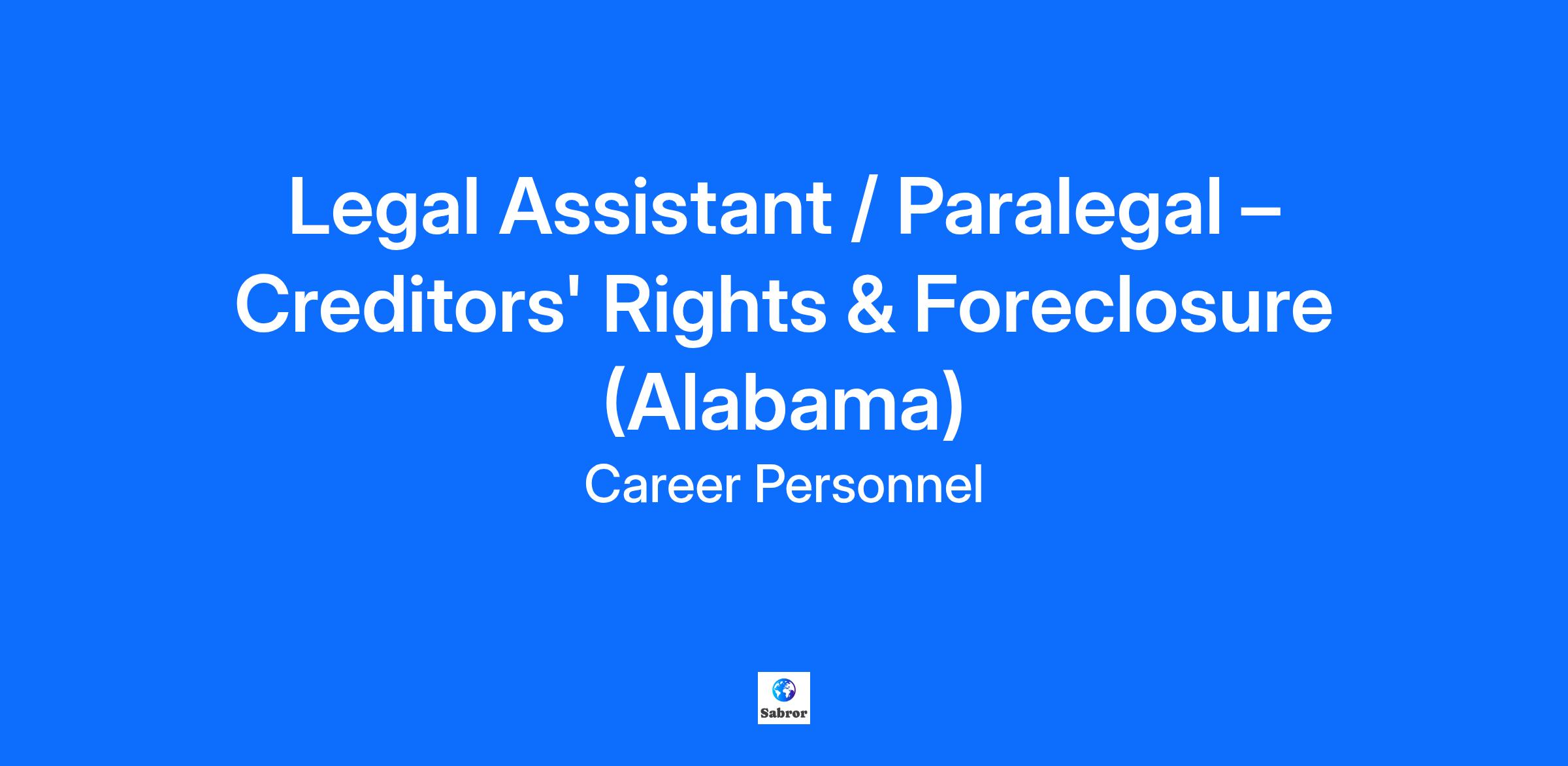 Legal Assistant / Paralegal – Creditors' Rights & Foreclosure (Alabama)