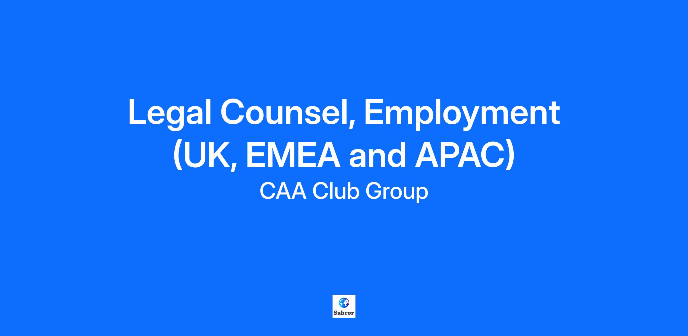 Job Description THE AGENCY Creative Artists Agency (CAA) is a leading entertainment and sports agency, with global expertise in filmed and live entertainment, digital media, publishing, sponsorship sales and endorsements, media finance, consumer investing, fashion, brand management and consumer product licensing, and philanthropy. Distinguished by its culture of collaboration and exceptional client service, CAA’s diverse workforce identifies, innovates, and amplifies opportunities for the people and organizations that shape culture and inspire the world. The trailblazer of the agency business, CAA was the first to build a sports business, create an investment bank, launch a venture fund, found technology start-up companies, establish a philanthropic arm, build a business in China, form brand marketing services division, and launch a family office advisory practice, among other innovations. Named Most Valuable Sports Agency by Forbes for nine consecutive years, CAA represents more than 3,000 of the world’s top athletes in football, baseball, basketball, hockey, and soccer, in addition to coaches, on-air broadcasters, and sports personalities and works in the areas of property sales and sponsorships, media advisory, brand consulting, venue development and strategic advisory, and executive search. Founded in 1975, CAA is headquartered in Los Angeles, and has offices in New York, London, Nashville, Munich, Shanghai, Beijing, Chicago, Washington, D.C., Singapore, Toronto, Denver, Charlotte, Jacksonville, and Atlanta, among other locations globally. For more information, please visit www.caa.com. OVERVIEW The Office of the Chief Legal Officer at CAA provides dedicated legal support in the areas of litigation, corporate transactions, compliance, advice and counseling, and governmental affairs. We support CAA’s needs when it comes to commercial, talent agency and employment laws, among other legal areas. The OCLO’s employment law team plays an important part in managing the agency’s compliance with all applicable employment laws, providing advice and counsel to the business, supporting workplace culture as well as diversity and inclusion efforts. The new role will report to the Senior Legal Counsel, Employment (UK, EMEA and APAC) based in London and also work closely with the Deputy General Counsel, Litigation & Employment and the wider employment law team based in Los Angeles, along with the UK and global HR teams. Every member of CAA’s legal team is expected to be a values-driven, results-oriented leader who provides legal services with the highest level of professionalism, competence and efficacy. THE ROLE This new role will provide day-to-day advice and counsel to the International and Global Human Resources teams and business leaders, draft various employment-related documents, and support other employment-law related matters, including researching and drafting policies and procedures, and drafting various types of employment-related documents. They will work with the Senior Employment Counsel and the other members of the Employment Legal team to provide efficient and high-quality service to internal and external stakeholders; implement employment law best practices in a rapidly growing and fast paced Company; and support the business needs of the Company and its employees. The ideal candidate will have broad UK employment law experience, with experience in assisting to co-ordinate, or contributing to, multi-disciplinary or multi-jurisdictional projects. Wider European, Middle Eastern and/or Asian employment law knowledge would also be preferred. RESPONSIBILITIES Provide advice and counsel on all employment related matters, such as employee relations, employee compensation and benefits, performance and disciplinary matters, immigration compliance, employment agreements, workplace policies, regulatory compliance (including pensions), and employment disputes and litigation. Perform job duties consistent with safety, legal and regulatory requirements, as well as CAA’s culture and business objectives. Maintain a strong moral compass and act within a defined ethical code of conduct that is in alignment with CAA’s values. Ensure compliance with applicable laws, regulations and policies. Identify and assess legal risks and opportunities and advise accordingly. Independently, efficiently and quickly handle legal matters and projects with support from the Senior Employment Counsel. Recognise when to elevate matters to Senior Employment Counsel. Work closely with those across the various CAA business lines including other members of the UK Legal team, the Legal team based in the US (including Employment, Litigation, Immigration, and Compliance), the tax team, and members of the Business Affairs teams. Work with outside counsel on employment related matters as required. Educate, and provide training to, business partners and stakeholders on legal matters, policies and procedures. Maintain confidentiality. Perform other tasks as assigned from time to time. QUALIFICATIONS/REQUIREMENTS Strong academic background: LLB (Hons), BA (Hons) or BSc (Hons) 2:1 or above and (if relevant) Graduate Diploma in Law Merit and above; LPC Merit and above. Qualified Solicitor (England and Wales). At least 7+ years of substantive UK employment law experience, working in private practice preferred. Experience of working in-house (including client secondments) is essential. Knowledge of and experience with wider European or Asian employment law would also be beneficial. A willingness to learn employment laws in new jurisdictions is a must. Knowledge of and experience with employment-adjacent matters (such as employment tax, payroll, benefits, pensions, immigration and global mobility matters) would also be beneficial, but not essential. A willingness to learn new skills in these areas (with support and guidance) is a must. Excellent verbal and written communication skills, interpersonal skills and emotional 