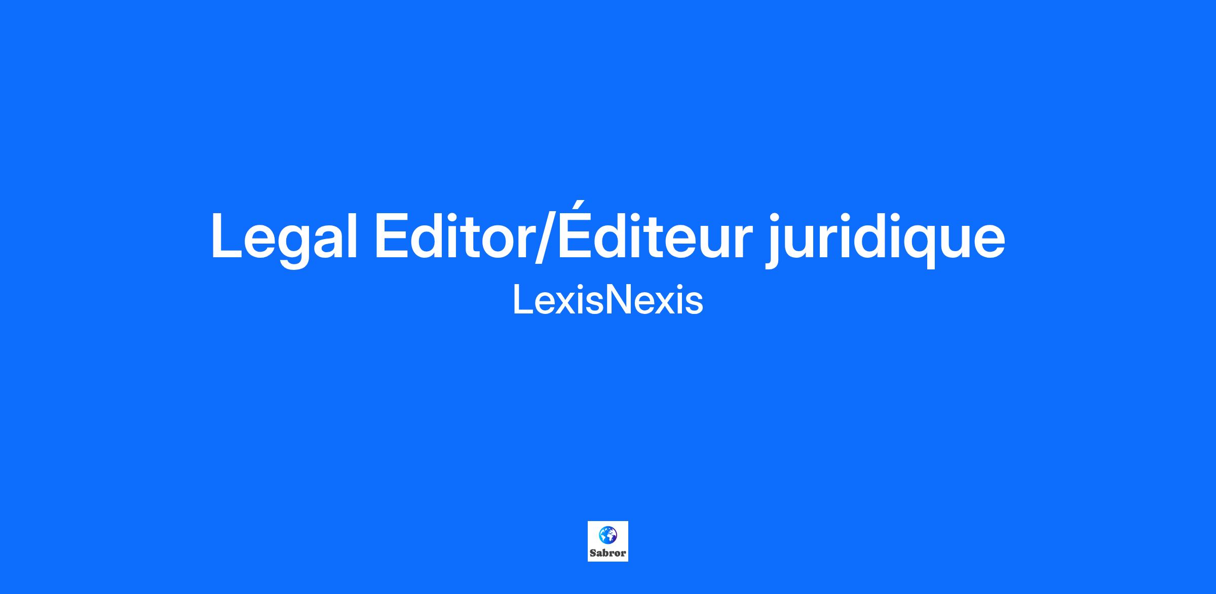 LexisNexis Canada is seeking to hire a Legal Editor.