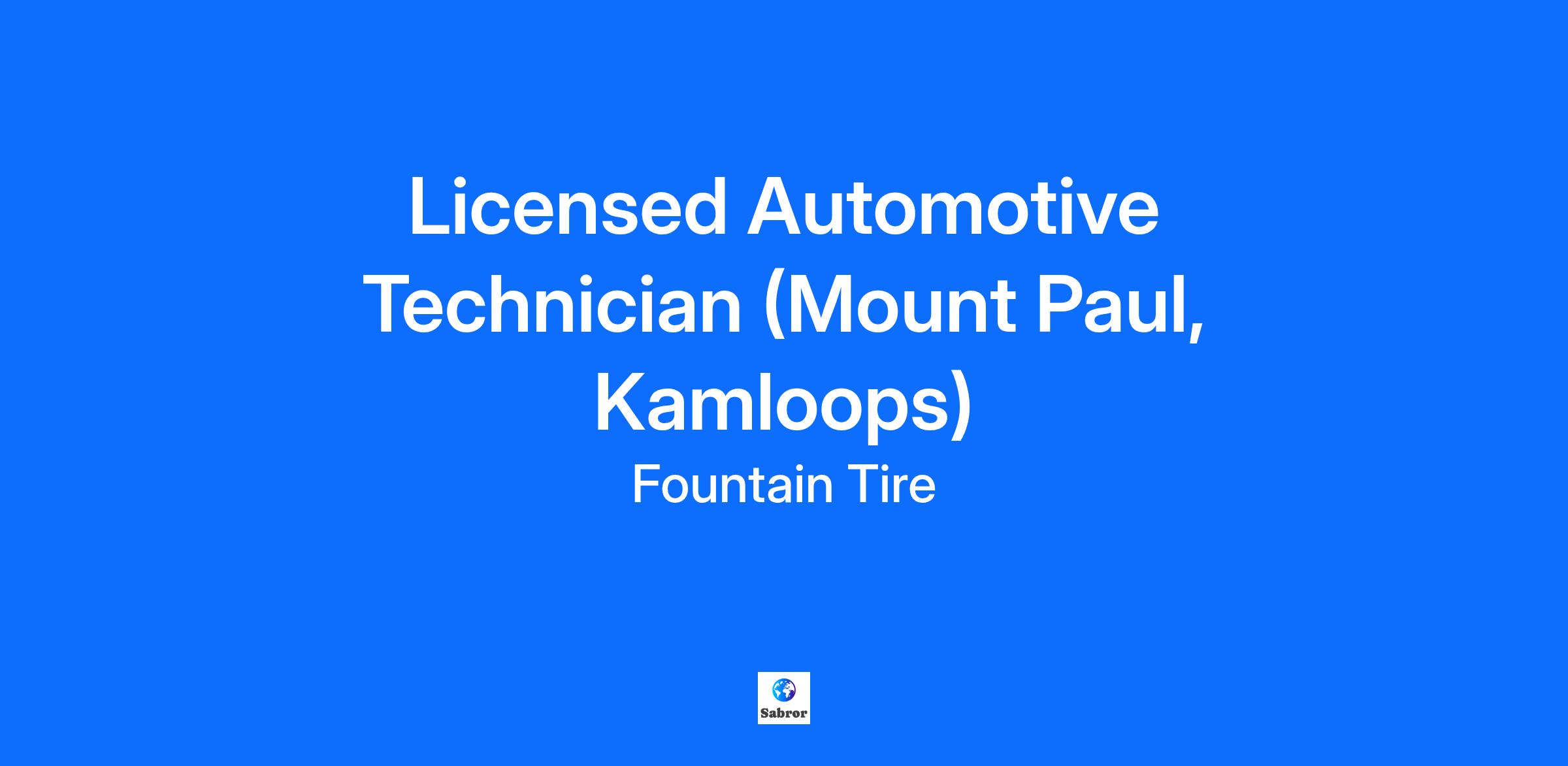 Overview Fountain Tire Kamloops (Mount Paul) is looking for a skilled and Licensed Automotive Service Technician to join our team! At Fountain Tire, our associates are our number one asset. As a member of our team, you will get to enjoy some of our great benefits: What’s in it for you? Competitive wages: $35 to $40 per hour based on experience We help take care of you and your family with our impressive health, dental and vision benefits A retirement savings plan with company matching to help you achieve your financial goals Regular day shifts with opportunities for overtime A clean and safe work environment Great discounts for you and your family on tires, parts and mechanical services The opportunity for continual learning, growth, and advancement! You will get to: Diagnosing the cause of any malfunction on a customer’s vehicle Performing appropriate repairs with accuracy and efficiency Completing approved service on customer vehicles Testing and adjusting vehicle systems to manufacturer’s performance specifications Performing scheduled maintenance service, such as oil changes, lubrications and tune ups. Advising customers and associates on work performed, general vehicle condition, and future repair requirements Maintaining mechanical service equipment on a regularly scheduled basis Operating company and customer vehicles in a clean and safe manner Supporting customer relationships by responding to customer inquiries What does it take to get on track? Licensed the Automotive Service Technician trade Red Seal status is an asset Strong knowledge of automotive industry and skills required to provide mechanical service to our customers A diagnostic specialist that enjoys keeping up with modern technology The successful applicant will have strong written and verbal communication skills Commitment to providing a superior customer experience Ability to maintain a valid driver’s license and provide a satisfactory driver’s abstract from province of residence on an annual basis At Fountain Tire, you’d have a great place to work! Market leading wages, a manager with a large support network, and the chance to learn and grow. If you are interested apply in-store or online today!