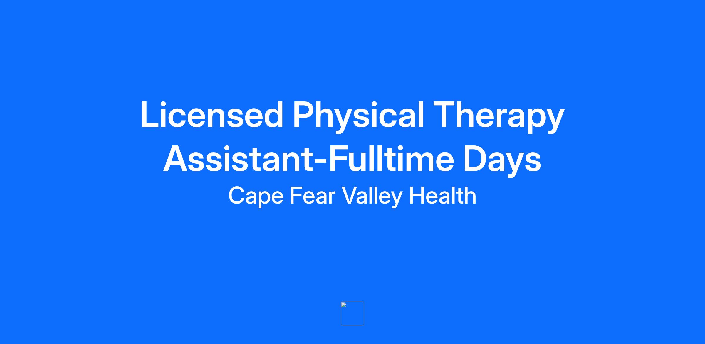$10,000.00 Sign On Bonus Facility Cape Fear Valley Medical Center Location Fayetteville, North Carolina Department Physical Therapy Job Family Allied Health Work Shift Days (United States of America) Summary Examines and treats patients referred for Physical Therapy services. Works as an effective Team member that contributes work efforts towards the improvement of quality patient care. Major Job Functions The following is a summary of the major essential functions of this job. The incumbent may perform other duties, both major and minor, that are not mentioned below. In addition, specific functions may change from time to time: Examines, tests, measures, generates, and interprets data/information findings for physical therapy diagnosis Recognizes, selects, and utilizes effective methods of verbal and non-verbal interactions based on the age of the patient Develops and modifies goals and treatment plans Delivers various therapeutic interventions accurately and effectively Delegates and monitors aspects of care to appropriate PT personnel Documents services delivered clearly, concisely, and accurately Accurately records and submits patient related charges for patient billing and departmental productivity Efficiently utilizes resources of human, equipment and supplies Authorized to have access to medications within their scope of practice Other duties as assigned Minimum Qualifications The following qualifications, or equivalents, are the minimum requirements necessary to perform the essential functions of this job: Education and Formal Training: Bachelor’s degree in Physical Therapy from a CAPTE accredited academic institution Master's degree preferred Current licensure as a Physical Therapist in the state of North Carolina Work Experience: New graduate or experienced clinicians considered Knowledge, Skills, and Abilities Required: Strong interpersonal skills Good written and verbal ability Exercises good judgment and problem-solving skills Effectively works in a team-oriented environment Demonstrates comprehensive knowledge and integration of factors involved in patient care such that clinician is considered a resource to others in the department Demonstrates respect in all communication Problem solves in an ethical and effective manner Demonstrates flexibility and teamwork Physical Requirements: Ability to communicate orally, read, write, hear, and visually assess patient status Ability to utilize proper body mechanics when examining or delivering care Ability to transfer and transport patients of various body weight and composition Ability to stand, bend, stoop, lift, turn, twist, sit, and walk frequently Ability to demonstrate proper use of and manipulate equipment Required Licenses and Certifications PT - NC Board Physical Therapy Examiners Cape Fear Valley Health System is an Equal Opportunity Employer M/F/Disability/Veteran/Sexual Orientation/Gender Identity For exceptional healthcare come to Cape Fear Valley Health where caring employees are committed to integrity, patient-centeredness and excellence throughout the entire healthcare process. At Cape Fear Valley Health, our goal is to improve the quality of every life we touch. Our diverse team of doctors, nurses and staff work together to create a better experience for every patient, every time. Cape Fear Valley is a 950-bed, 8-hospital regional health system, the 8th largest in North Carolina, with more than 1 million inpatient and outpatients annually. A private not-for-profit organization with over 7,000 employees and 850 physicians. Our employees and physicians proudly serve a seven-county region of southeastern North Carolina, including Fayetteville, Fort Bragg, Hope Mills, Raeford, Lumberton, Elizabethtown, Clinton, Lillington, Dunn and beyond. Our medical facilities include Cape Fear Valley Medical Center, Highsmith-Rainey Specialty Hospital, Cape Fear Valley Rehabilitation Center, Behavioral Health Care, Bladen County Hospital, Hoke Hospital, Central Harnett Hospital, Betsy Johnson Hospital, as well as more than 60 medical offices and specialty care clinics spread throughout the Cape Fear region.