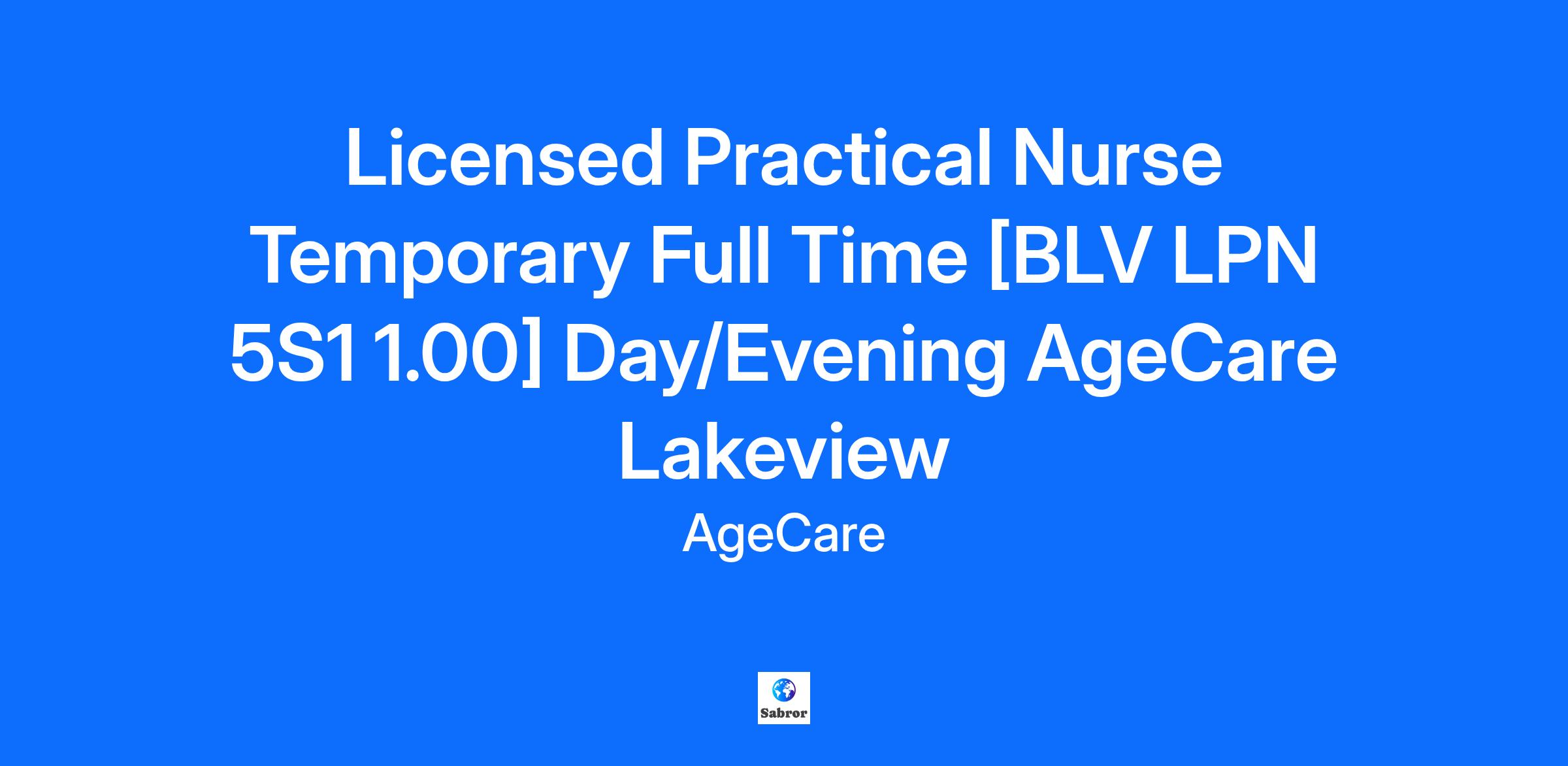 Licensed Practical Nurse Temporary Full Time [BLV LPN 5S1 1.00] Day/Evening AgeCare Lakeview