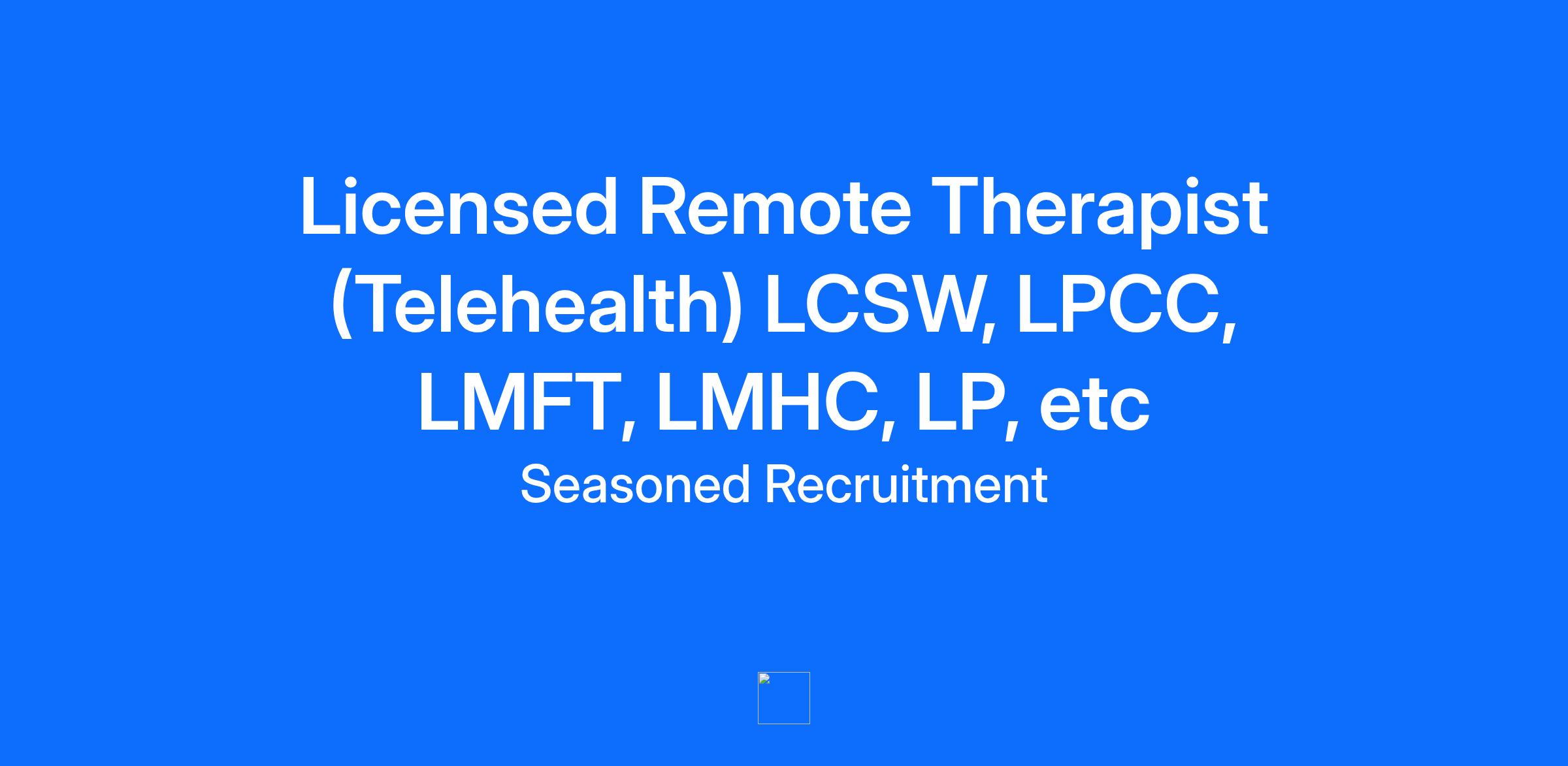 Opportunity: Licensed Remote Therapist (Telehealth) Location: Remote (Work from home) We are actively seeking skilled and compassionate licensed psychotherapists (including LCSW, LMFT, LMHC, LPCC, PsyD, and PhD holders) to expand our dedicated team of telehealth professionals. This role focuses on delivering high-quality mental health counseling services to a diverse clientele through secure, virtual platforms. What You Will Do: Manage a caseload of clients, conducting all therapy sessions remotely via our approved video conferencing tools. Formulate comprehensive, individualized treatment strategies aligned with client objectives and clinical best practices. Maintain meticulous clinical documentation, ensuring all client files, progress notes, and treatment plans are current and accurate. Engage in collaborative consultation with other mental health providers as necessary to ensure coordinated and effective client care. Uphold the highest levels of professional conduct and ethical standards in practice. Compensation & Benefits: Competitive Session Pay: Earn between $60 and $150 per session, with final rate determined by licensure level and specific CPT billing codes. Guaranteed Pay: Last minute cancellations and no-shows are fully paid. Flexibility: Benefit from highly flexible scheduling to accommodate your personal and professional needs. If you are a licensed professional committed to making a tangible, positive impact through teletherapy, we invite you to apply and join our mission. Requirements: - Active state license in LCSW, LMFT, LMHC, LPCC, PsyD, PhD, etc - Experience providing psychotherapy services. - Strong communication and interpersonal skills. - Comfortable using teletherapy platforms and technology. - Ability to work independently and manage caseload effectively. Flex Scheduling - You set your own hours Guaranteed compensation for last-minute cancellations and no-shows.