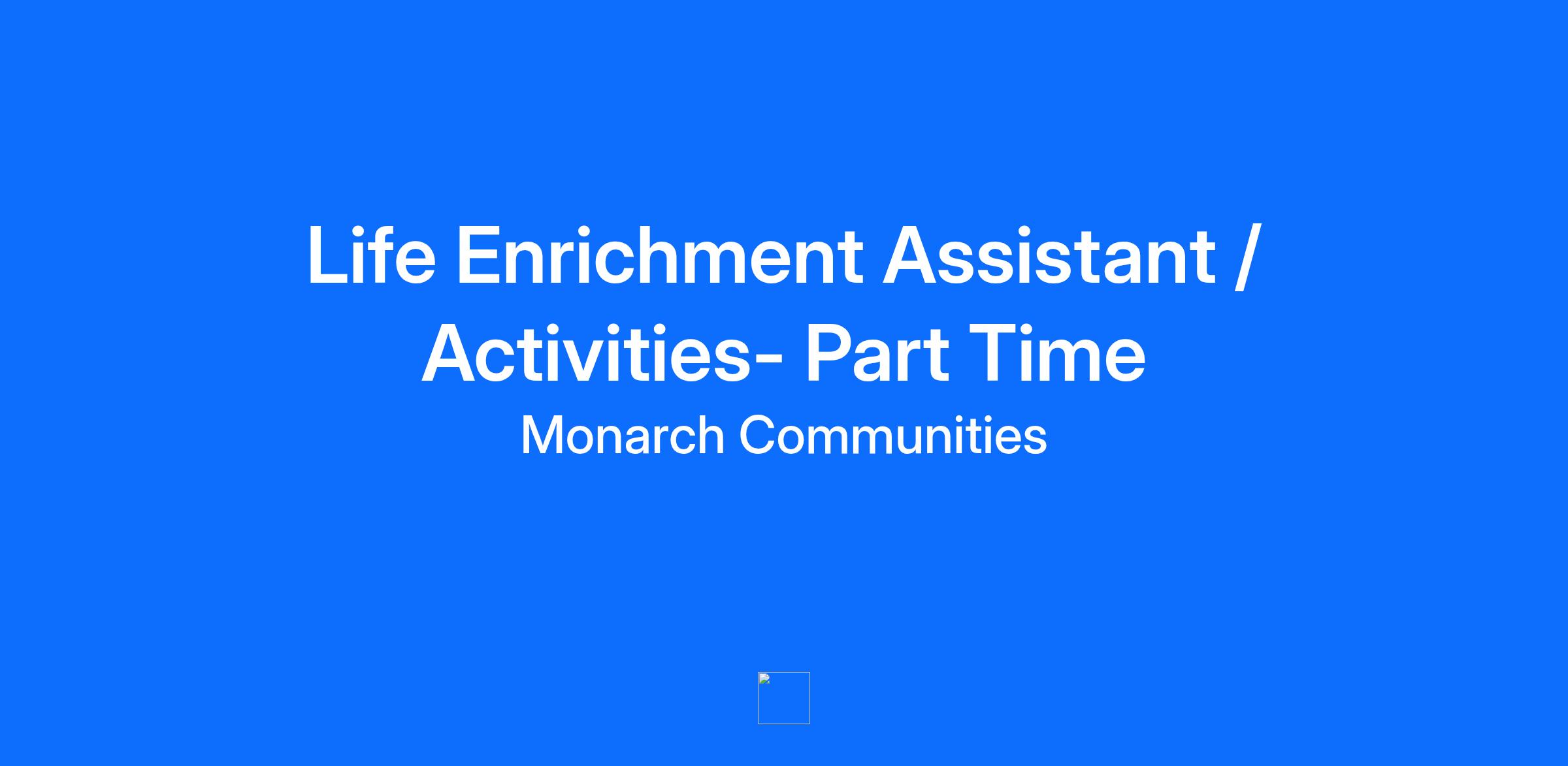 Company Description Monarch/Brandywine: Company Culture and Values: At Monarch Communities, we value compassion, innovation, and community. Our team is committed to making a meaningful impact on the lives of our residents and fostering a collaborative and supportive work environment. Job Description We are seeking a friendly and supportive Activities Assistant to join our team in Bridgewater, NJ. In this role, you will be responsible for assisting with recreational activities. Plan, organize, and lead engaging recreational activities for residents or program participants Maintain a clean and well-organized activities area and van Ensure all safety protocols are followed during activities Collaborate with team members to create a positive and supportive environment Keep accurate records of activities attendance Assist with setting up and cleaning up activity areas Qualifications High school diploma or equivalent Basic first aid and CPR certification Strong interpersonal and communication skills Excellent time management and organizational abilities Physical fitness to assist with activities and mobility support Ability to work flexible hours, including evenings and weekends as needed Experience working with seniors or individuals with disabilities (preferred) Knowledge of senior care or recreational activities (preferred) Patience, empathy, and a positive attitude Ability to work both independently and as part of a team Proficiency in basic computer skills for record-keeping and communication Additional Information Salary Range: $16.00 - $17.00 Benefits Offered (for Part-Time Employees): Paid Time Off (PTO) Flexible Schedule On the job training Employee Assistance Program (EAP) Free Parking Other Compensation Programs: Employee Referral Bonus Resident Referral Bonus Equal Opportunity Statement: Monarch Communities and Brandywine Senior Living is an Equal Opportunity Employer. We comply with all applicable federal, state, and local laws. We celebrate diversity and are committed to creating an inclusive environment for all employees. Employment Category: Regular Part Time - Scheduled less Than 30 at Least 22.5 Per Week Compensation: USD16.00 - USD17.00 - hourly