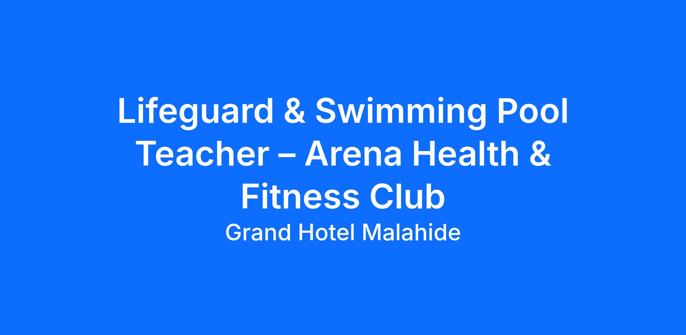 Lifeguard & Swimming Pool Teacher – Arena Health & Fitness Club