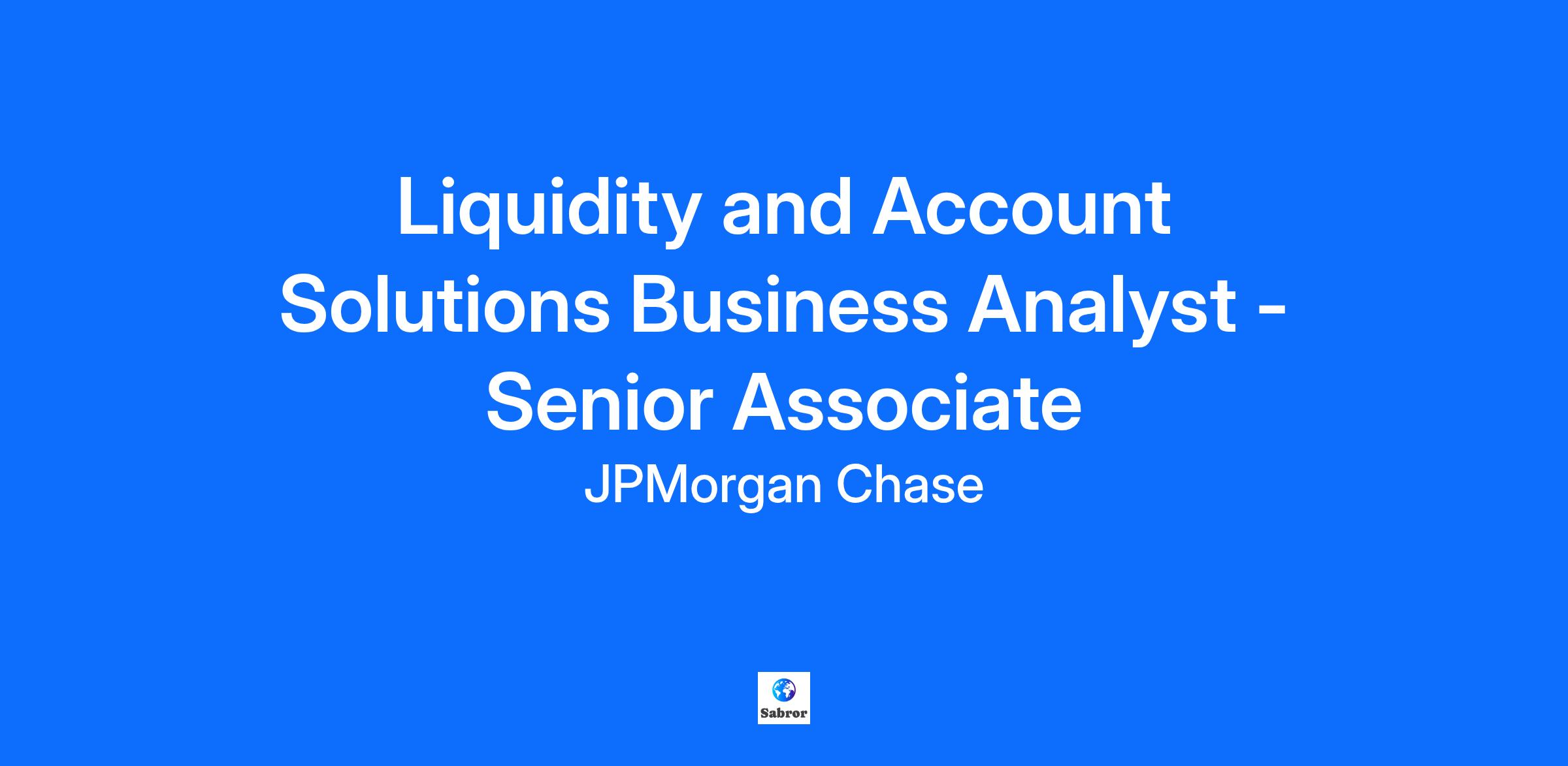 Liquidity and Account Solutions Business Analyst - Senior Associate