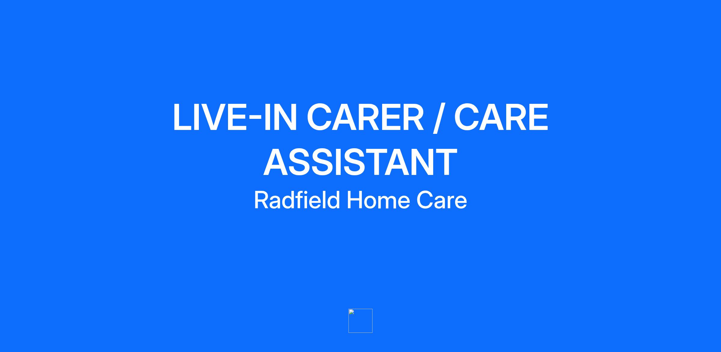Job Title: LIVE-IN CARER / CARE ASSISTANT