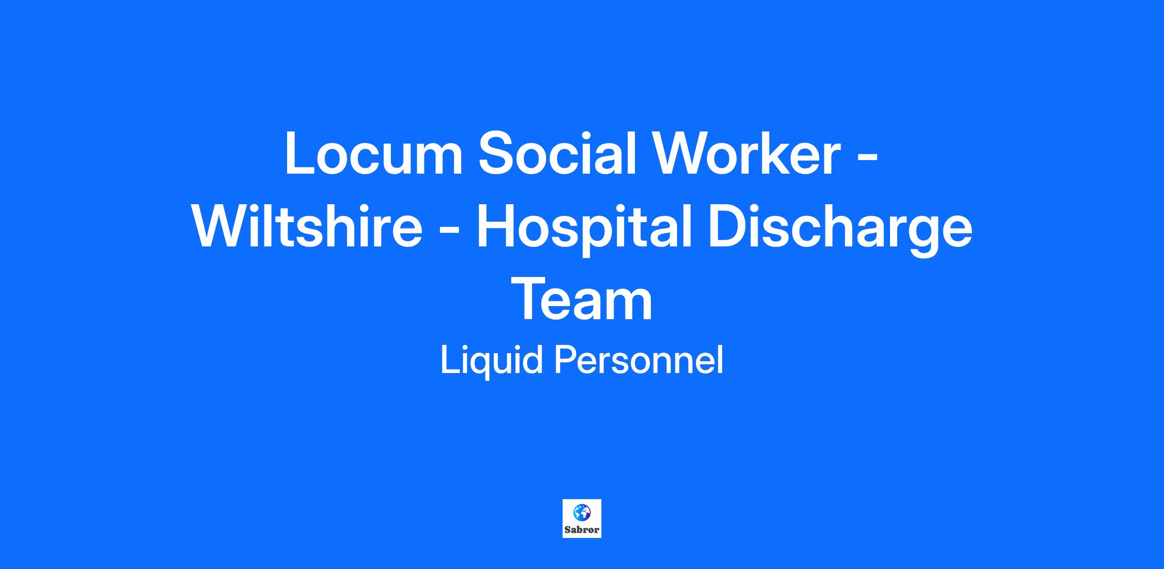 Job Title: Hospital Discharge and Assessment Team Locum Social Worker Location: Wiltshire Council Rate: £35 per hour An exciting role has become available in Wiltshire. They are looking for a social worker to join their Hospital Discharge and Assessment Team. What will your responsibilities be? You will undertake assessments, determine care packages/support plans, and manage a large and complex caseload to maintain or improve the wellbeing of clients. You will also professionally supervise and support other colleagues. You will need hospital social work experience and also skills to manage safeguarding enquiries and complex case work. Benefits: * Competitive Payrate * Hybrid working available * Supportive team * Flexible scheduling options * Long term contracts Qualifications and Experience: * To be a Social Worker registered with Social Work England with a completed ASYE year or equivalent demonstrable experience in a statutory social work setting * Have experience working within Adult Social Care, including working in a multi-agency and court environment * Have knowledge and understanding of the legislation, models, and theories relevant to Adult Social Work How to apply? If this is a job for you, feel free to click apply below or if you want to learn more about it, please contact 0345 241 9590. Why Liquid Personnel? * New ‘Faster Pay’ service getting you paid more quickly * Twice weekly payroll * Free DBS and compliance service * Access to exclusive roles that aren’t available from other agencies * Free access to Liquid’s exclusive social work training and CPD portal * Your own dedicated consultant with extensive social work knowledge * Access to a wide selection of social work positions across the UK * “Refer a Friend” bonus – get £500 for each social worker you refer who we successfully place* * “Find your own job” bonus – get £250 for bringing your own position to us * Liquid Personnel is an equal opportunities employer. Liquid Personnel Ltd is acting as an Employment Business in relation to this vacancy. Terms and conditions apply to our bonus schemes. Reasonable Adjustments: We are unable to support or accept applications from candidates who are residents within the Red or Amber list of the Code of practice for the international recruitment of health and social care personnel in England, based on the World Health Organisation (WHO) Workforce Support and Safeguard List. BH - 184657 GH - 24479