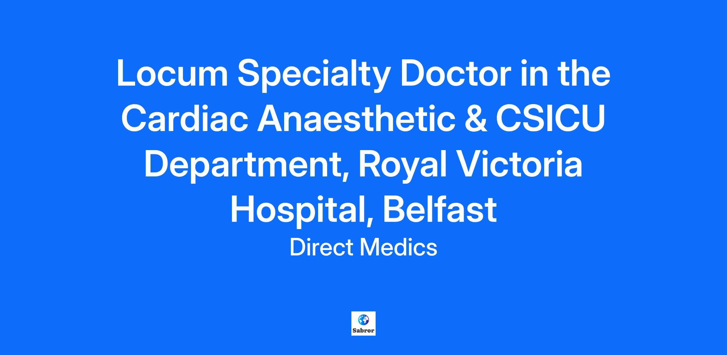 Vacancy: Specialty Doctor – Cardiac Anaesthetic & CSICU Department We are currently inviting applications for the position of Specialty Doctor in the Royal Victoria Hospital, Belfast, Northern Ireland's Cardiac Anaesthetic and Cardiac Surgical Intensive Care Unit (CSICU) Department. 📅 Rota Details: Applicants must be available and willing to work the full rota, which includes: Day Shifts: 07:30 – 18:00 Long Shifts: 07:30 – 20:30 Night Shifts: 20:00 – 08:30 Includes weekends and nights on a rotational basis ✅ Essential Requirements: Airway Trained (must have current and demonstrable airway management competency) EPIC Training completed (experience using the EPIC electronic health record system) 🌍 International Applicants: Consultant-level doctors from overseas who do not have prior UK experience but are willing to step down to a Specialty Doctor role will be considered. Important: Applicants must have the right to work in the UK. Visa sponsorship is not available for this post. About Direct Medics This year, we’re proud to celebrate our 25th anniversary, marking a quarter-century of placing healthcare professionals in locum roles across both the public and private sectors in the UK and Ireland. Our long-standing reputation speaks to the trust and reliability we’ve built within the healthcare sector. What We Offer: Approved and Trusted Supplier: Placing healthcare professionals in locum roles across leading healthcare systems such as the NHS and HSE, covering a wide range of settings and specialties. Dedicated Recruitment Consultants: We provide one-to-one support from our recruitment specialists with in-depth local market knowledge. Comprehensive Compliance Assistance: Full guidance on documentation and ongoing regulatory requirements. FREE Accredited Training: Remain compliant and current with training delivered by our in-house experts. Essential Requirements Valid GMC Registration with full Licence to Practice Right to Work in the UK Minimum 6 months of medical experience in this role or a similar role within the UK Benefits We offer our medical candidates a complete end-to-end support package worth up to £2,000 annually. The following services are included and provided at no cost to our candidates: Free Annual Appraisal (worth £600 per year) Free Multi-Source Feedback (worth £200 per exercise) Free Revalidation Recommendations (worth £200 per recommendation) Free Governance Support: in the event of Fitness to Practice concerns (unlimited with no charge regardless of resources required) Free Enhanced Criminal Records Check Free Serology Reporting Free Occupational Health Assessment Unlimited Colleague Referral Bonus Scheme* Priority Locum Bookings Weekly Payroll & Choice of Payment Options Negotiable Payrates 24/7 On Call Assistance *T&Cs Apply To Apply Submit your contact details and CV via the APPLY button To discuss this role in further detail, contact our medical recruitment consultant directly on 02890 590077 or email at MedicalRecruitment@DirectMedics.com for further information. Stay in the loop with all our internal job postings by registering for our new Direct Medics Connect service! By joining, you’ll be the first to hear about upcoming roles and remain part of our active talent pool. Register now on Connect!