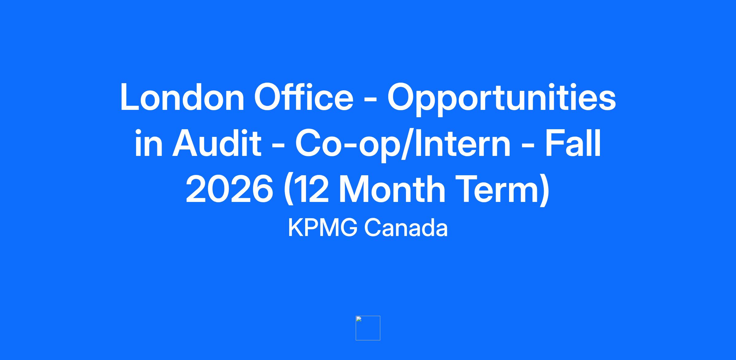 Overview At KPMG in Canada, you’ll join a team of diverse and dedicated problem solvers, connected by a common cause: turning insight into opportunity for clients and communities around the world. Do work that matters, supported by a community that values difference and cares about you. Gain learning that’ll last you a lifetime and be recognized for the impact you make. With a focus on encouraging employees to come as they are, KPMG provides its employees with a variety of unique tools and support systems that ensure they thrive and make their mark in their career and in their communities. What you will do Our London office is seeking undergraduate business, commerce and accounting and finance students who are pursuing their CPA designation to join the team as a co-op/intern hire in Fall 2026 for a 12 month term as a part of our Audit practice. Our Audit Team As a member of the audit and assurance team at KPMG, you will have the opportunity to work directly with some of today's leading companies, understand their processes, and help them meet evolving financial reporting standards and regulations. KPMG offers audit and assurance services to a variety of clients within different industries and engages with public, private, and not-for-profit clients. Learn more at https://home.kpmg/ca/en/home/services/audit.html If you would like a sneak peak of what a career in audit and assurance could look like at KPMG, check out our “Experience a Day with KPMG in Canada” program”. (Note: This is an opportunity to enhance your skillset and rest assured it is NOT evaluated as part of our recruitment process.) What’s in it for you: Interns & Co-op Students Our Intern and Co-op program aims to develop the next generation of leaders through challenging and interesting work. During your term, you will gain authentic engagement experience working with client projects across our teams. Along the way, you will broaden your skill set through KPMG’s vast learning and development opportunities that you can take on to your future career. The national Power Up programming will also provide you with opportunities to learn from our leaders, build a network with other student hires through social events, collaborate with professionals from across KPMG and learn how KPMG supports you in your career journey. What you bring to the role You strive to make a meaningful and positive difference alongside your peers, to work collaboratively and with innovation at the forefront. You’re passionate about being involved in your local community and post-secondary institution and have a proven ability to achieve personal and professional success while being curious as you learn emerging practices and technologies. How you will succeed: You have a strong academic record You are committed to achieving your Canadian CPA designation and working to obtain the CPA required pre-requisite courses at your post-secondary institution You build collaborative relationships: Establishes strong relationships internally and externally and builds wide and productive networks You develop and motivate others: Engages others, instils confidence, and coaches people to find meaning in their work and achieve exceptional results You take opportunities to learn and adapt: Uses insights and self-reflection to build capability and embrace new challenges You drive quality: Delivers high-quality results and exceptional service that provide value You foster innovation: Embraces a culture of innovation and experimentation to create value Providing you with the support you need to be at your best To learn more about how you can thrive with us at the firm, explore life at KPMG in Canada! To apply: Start your journey and make your mark with KPMG today! Please apply directly to KPMG at Students - KPMG Canada (home.kpmg). All applications must be received no later than 11:59PM local time on January 12, 2026. Please consult with the McMaster and Western Career Centres and any specific deadlines they may require you to follow. Feeling a little overwhelmed with the application process? Don’t worry – we've got you covered! Check out our resume and interview tips available over at our Application Journey page! What is required for this application process: Please limit your application to one role at the location of your choice based on your interests. You will be asked to complete an application questionnaire where you can outline your preferences. Please carefully review which specific opportunities are available before submitting your application, as openings vary by office. Applications can be addressed to “Hiring Manager” and should include a cover letter, resume, and a copy of your most recent unofficial transcript. If you do not have access to an electronic copy of your transcript, we ask that you attach a screenshot of your grades from your school’s website. All considered applicants must have or will obtain legal authorization to work in Canada by the start date of employment. If you require more information about the CPA Ontario Academic Prerequisites at Post-Secondary Institutions, you can visit: CPA Ontario | Academic Prerequisites at Post-Secondary Institutions If you experience any difficulties with the online system, please contact ca-fmcandidateexpcoe@kpmg.ca.. Learn more about where a career at KPMG can take you. Our Values, The KPMG Way Integrity, we do what is right | Excellence, we never stop learning and improving | Courage, we think and act boldly | Together, we respect each other and draw strength from our differences | For Better, we do what matters KPMG in Canada is a proud equal opportunities employer and we are committed to creating a respectful, inclusive and barrier-free workplace that allows all of our people to reach their full potential. A diverse workforce is key to our success and we believe in bringing your whole self to work. We welcome all qualified candidates to apply and hope you will choose KPMG in Canada a