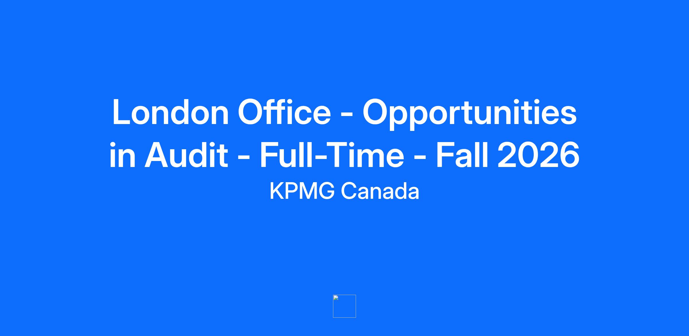 Overview At KPMG in Canada, you’ll join a team of diverse and dedicated problem solvers, connected by a common cause: turning insight into opportunity for clients and communities around the world. Do work that matters, supported by a community that values difference and cares about you. Gain learning that’ll last you a lifetime and be recognized for the impact you make. With a focus on encouraging employees to come as they are, KPMG provides its employees with a variety of unique tools and support systems that ensure they thrive and make their mark in their career and in their communities. What you will do Our London office is seeking undergraduate business, commerce and accounting and finance students who are pursuing their CPA to join the team as a full-time hire in Fall 2026 as a part of our Audit practice. Our Audit Team As a member of the audit and assurance team at KPMG, you will have the opportunity to work directly with some of today's leading companies, understand their processes, and help them meet evolving financial reporting standards and regulations. KPMG offers audit and assurance services to a variety of clients within different industries and engages with public, private, and not-for-profit clients. Learn more at https://home.kpmg/ca/en/home/services/audit.html If you would like a sneak peak of what a career in audit and assurance could look like at KPMG, check out our “Experience a Day with KPMG in Canada” program”. (Note: This is an opportunity to enhance your skillset and rest assured it is NOT evaluated as part of our recruitment process.) What’s in it for you Full Time Students At KPMG in Canada, you will find opportunity across geographies and industries to do work that matters with a team of peers, mentors and leaders that value your unique perspectives and experiences. As a full-time employee at the firm, you will have the opportunity to work closely with our clients and learn about different industries while you advance your learning and development goals through personalized on-the-job training, supported by your performance manager, to ensure your growth is continuous throughout your career journey. We provide opportunities that enable you to thrive with us, including remote work and travel program opportunities and 50 personal care hours beyond your vacation time. What you bring to the role You strive to make a meaningful and positive difference alongside your peers, to work collaboratively and with innovation at the forefront. You’re passionate about being involved in your local community and post-secondary institution and have a proven ability to achieve personal and professional success while being curious as you learn emerging practices and technologies. How you will succeed You have a strong academic record You are committed to achieving your Canadian CPA designation and working to obtain the CPA required pre-requisite courses at your post-secondary institution You build collaborative relationships: Establishes strong relationships internally and externally and builds wide and productive networks You develop and motivate others: Engages others, instils confidence, and coaches people to find meaning in their work and achieve exceptional results You take opportunities to learn and adapt: Uses insights and self-reflection to build capability and embrace new challenges You drive quality: Delivers high-quality results and exceptional service that provide valu You foster innovation: Embraces a culture of innovation and experimentation to create value Providing you with the support you need to be at your best To learn more about how you can thrive with us at the firm, explore life at KPMG in Canada! To apply: Start your journey and make your mark with KPMG today! Please apply directly to KPMG at Students - KPMG Canada (home.kpmg). All applications must be received no later than 11:59PM local time on January 12, 2026. Feeling a little overwhelmed with the application process? Don’t worry – we've got you covered! Check out our resume and interview tips available over at our Application Journey page! What is required for this application process: Please limit your application to one role at the location of your choice based on your interests. You will be asked to complete an application questionnaire where you can outline your preferences. Please carefully review which specific opportunities are available before submitting your application, as openings vary by office. Applications can be addressed to “Hiring Manager” and should include a cover letter, resume, and a copy of your most recent unofficial transcript. If you do not have access to an electronic copy of your transcript, we ask that you attach a screenshot of your grades from your school’s website. All considered applicants must have or will obtain legal authorization to work in Canada by the start date of employment. If you require more information about the CPA Ontario Academic Prerequisites at Post-Secondary Institutions, you can visit: CPA Ontario | Academic Prerequisites at Post-Secondary Institutions If you experience any difficulties with the online system, please contact ca-fmcandidateexpcoe@kpmg.ca. Our Values, The KPMG Way Integrity, we do what is right | Excellence, we never stop learning and improving | Courage, we think and act boldly | Together, we respect each other and draw strength from our differences | For Better, we do what matters KPMG in Canada is a proud equal opportunities employer and we are committed to creating a respectful, inclusive and barrier-free workplace that allows all of our people to reach their full potential. A diverse workforce is key to our success and we believe in bringing your whole self to work. We welcome all qualified candidates to apply and hope you will choose KPMG in Canada as your employer of choice. Adjustments and accommodations throughout the recruitment process At KPMG, we are committed to fostering an inclusive recruitment proce