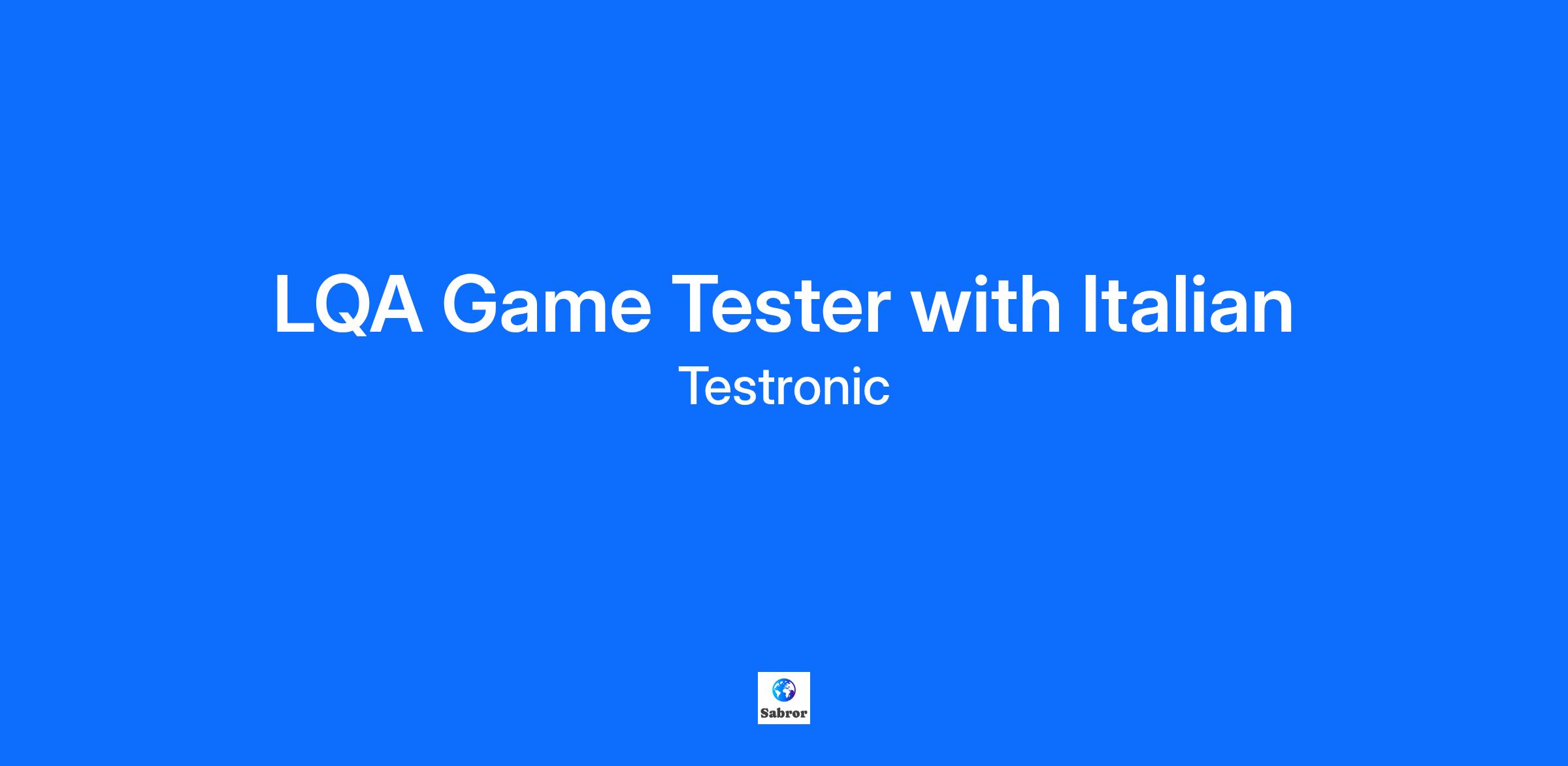 Join our Localization Quality Assurance department and be responsible for: Finding and correcting any translation errors, spelling mistakes and ambiguities. Checking the game’s tone and style, audio, text, and cultural correctness. Creating reports in Excel and Jira. Submitting quality improving suggestions for the errors you find. Italian C2 level or native. English C1 level to ensure internal communication and reporting. Perfect knowledge of grammar, spelling, and punctuation of your language. Good MS Office skills, especially Excel. Great communication skills allowing to express yourself precise and clearly. Ability to work in a team and under pressure of time. You can score extra points for: Passion for gaming and curiosity for new titles (all types of games count!). Experience in game testing, translation, or linguistic game testing. Familiarity of platforms like Sony (PS4/PS5), Microsoft (PC, Xbox One/XSX/XSS), Nintendo (Switch), Apple (iOS). Casual contract with flexible projects and competitive salary. REMOTE type of work. A chance to get your foot in the door of the gaming industry, where you'll gain experience and develop skills in language testing methodologies and techniques. A friendly and collaborative work environment, where we work together to achieve great quality in upcoming titles. Online training platforms and workshops to help you grow with us. Relaxation areas with free fruits and coffee or tea, arcades, gaming consoles, board games and team building activities. The rest is on us! If you are interested in exploring the gaming industry, APPLY today and let's make great games together! About Testronic: Staffed by industry veterans, Testronic is an award-winning service provider in the outsource QA space. We partner with some of the industry’s most prominent developers and publishers worldwide and cover all platforms and popular storefronts.