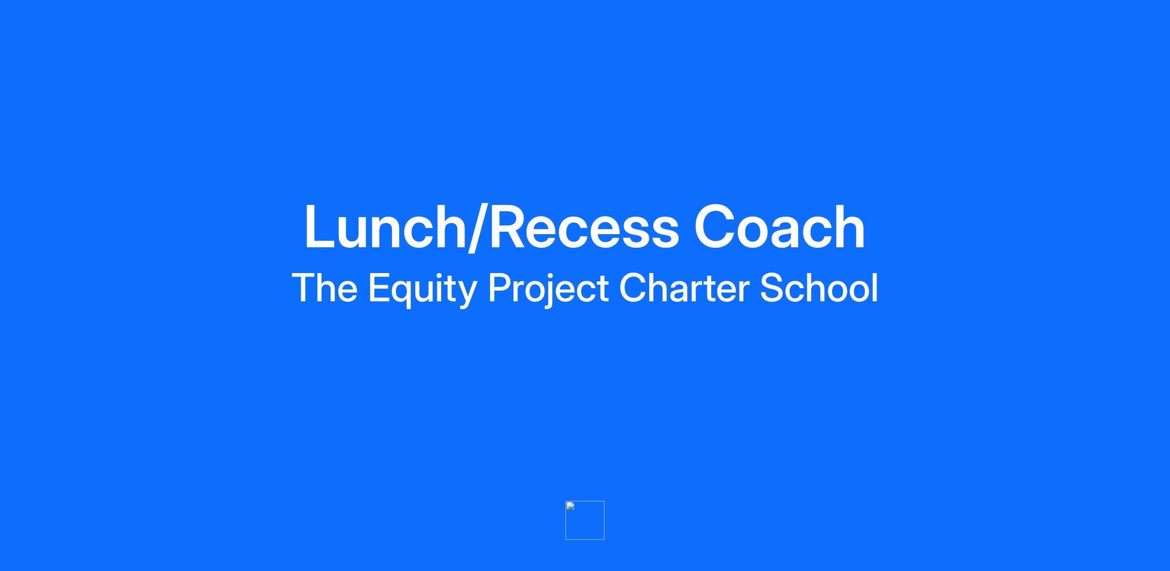 Why this job: Join the team of a school that has been featured in The New York Times, The Wall Street Journal and on 60 Minutes for its radical investment in teachers and its outstanding results. The Equity Project (TEP) Charter School is seeking a Lunch/Recess Coach to support and inspire our talented middle school students, in and out of the classroom, during non-instructional periods. This is an amazing opportunity for individuals who are passionate about serving students and demonstrate expertise when working with students (outside of the classroom). Watch the video below to learn more about TEP's new Middle School facility, designed with community and equity at the forefront. Position overview: Lunch/Recess Coaches help supervise 35-minute lunch and recess periods for students (5th to 8th grade). Individuals in this role support Monday - Friday from approximately 10:15 AM - 1:15 PM. Qualifications: Applicants with significant experience working with middle school students are strongly preferred. Compensation: $20/hour. Most weeks will involve 15.5 hours of work, with the potential of additional hours during the week, if and when available. To apply: Please submit a resume and cover letter below. In order to be considered for this position, your cover letter must detail your specific experience working with middle school students. Applications without cover letters will not be considered. Image already added