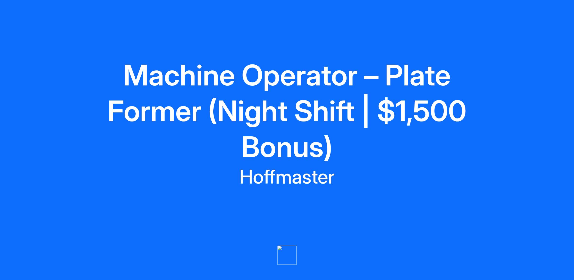 For more than 75 years, Hoffmaster has been the trusted leader in premium single-use tableware and entertaining solutions. Our mission is simple: to elevate dining, entertaining, and baking experiences with convenient and sustainable solutions. Our portfolio includes everything from high-quality napkins, paper plates, and baking supplies to paper straws and party decor. Whether it’s a catered event from a restaurant or family gathering in the comfort of your home, Hoffmaster products are designed to make moments easier, more convenient, and more memorable. We operate through two divisions: • Consumer Division – Focused on serving major retailers and club stores with our trusted products for end users and consumers. • Foodservice Division – Serving restaurants, bakeries, hotels, hospitals, colleges & universities, and more with premium single-use solutions. Headquartered in Oshkosh, Wisconsin, Hoffmaster has six locations across the U.S. and Canada, giving us the scale and reach to serve diverse customers. At Hoffmaster, our people are the heart of our success. We foster a culture built on collaboration, innovation, and respect—where employees are encouraged to share ideas, grow their careers, and make a meaningful impact. We are proud to offer a supportive workplace that values teamwork, creativity, a strong customer focus, and drives continuous improvement. When you join Hoffmaster, you become part of a company with a long-standing tradition of excellence and a forward-looking commitment to sustainability and innovation. Together, we’re shaping the future of dining and entertaining experiences. . Machine Operator – Plate Former Line | Night Shift | $1,500 Sign-On Bonus 📍 Clintonville, WI Pay: $19.50–$24.00/hr (based on experience) Premium: +$1.00/hr after 6 PM Schedule: 6:00 PM – 6:00 AM | 2-2-3 Rotating Why You’ll Love This Job $1,500 sign-on bonus (paid at 90 days, 6 months, and 1 year) Paid training – no experience required Work only 14 days/month with every other weekend off Attendance & anniversary bonuses Advancement potential in a team-focused environment Benefits Package Health, dental, and vision insurance Company-paid life, disability, and AD&D Supplemental life insurance options 401(k) with company match 11 paid holidays Vacation, sick, and wellness time (extra 40 hours for night shift employees) About the Role Operate high-speed machines that form paper plates. Load materials, monitor production, perform quality checks, and keep your area safe and organized. You’ll: Operate and monitor machines Load raw materials & troubleshoot minor issues Perform quality checks Follow safety & food safety standards Work with a team to meet goals What We’re Looking For High school diploma or GED Ability to work 12-hour rotating night shifts Comfortable standing, bending, lifting, moving throughout shift Basic math and reading skills Mechanical aptitude a plus Positive attitude and willingness to learn What Is a 2-2-3 Schedule? Week 1: Work Mon–Tue, Off Wed–Thu, Work Fri–Sat–Sun Week 2: Off Mon–Tue, Work Wed–Thu, Off Fri–Sat–Sun 👉 You’ll work only 14 days per month with 3–4 day weekends every other week. Apply Today 📧 kevin.yancey@hoffmaster.com Apply on Indeed! #ClintonvilleJobs255 #LI-DNI #CreativeConverting255 The above information on this description has been designed to indicate the general nature and level of work performed by employees within this classification. It is not designed to contain or be interpreted as a comprehensive inventory of all duties, responsibilities, and qualifications required of employees assigned to this job. Reasonable Accommodations Statement: To accomplish this job successfully, an individual must be able to perform, with or without reasonable accommodation, each essential function satisfactorily. Reasonable accommodations may be made to help enable qualified individuals with disabilities to perform the essential functions. All qualified applicants will receive consideration for employment without regard to race, color, religion, sex, sexual orientation, gender identity, national origin, veteran or disability statu Let’s connect! At Hoffmaster, we believe every person deserves to feel successful. That’s why we provide a total rewards package designed to support our employee’s success –at work, at home, and in life. This includes: Medical, Dental, Vision, Life and Disability insurances, Physical and Mental wellness programs, Tuition Reimbursement, Paid Vacation and Holidays, Employee Assistance Program, and more. Learn more about our Benefits at HoffmasterBenefits.com The above information on this description has been designed to indicate the general nature and level of work performed by employees within this classification. It is not designed to contain or be interpreted as a comprehensive inventory of all duties, responsibilities, and qualifications required of employees assigned to this job. Reasonable Accommodations Statement: To accomplish this job successfully, an individual must be able to perform, with or without reasonable accommodation, each essential function satisfactorily. Reasonable accommodations may be made to help enable qualified individuals with disabilities to perform the essential functions. All qualified applicants will receive consideration for employment without regard to race, color, religion, sex, sexual orientation, gender identity, national origin, veteran or disability status.
