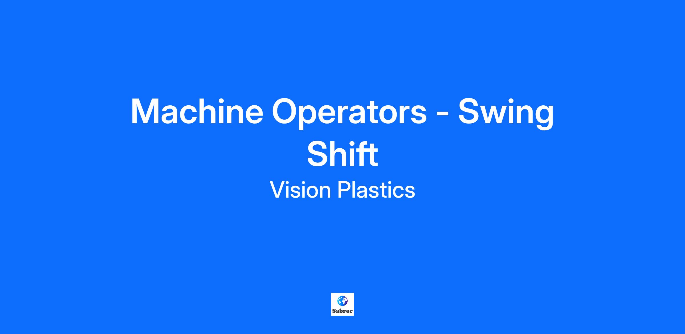 Vision Plastics, Inc, the Northwest leader in custom injection molding, is hiring Machine Operators for swing shift! Do you want to work in a clean environment and receive paid on-the-job training? Are you punctual, have good attendance, and can work independently, as well as with a team? If so, apply today!