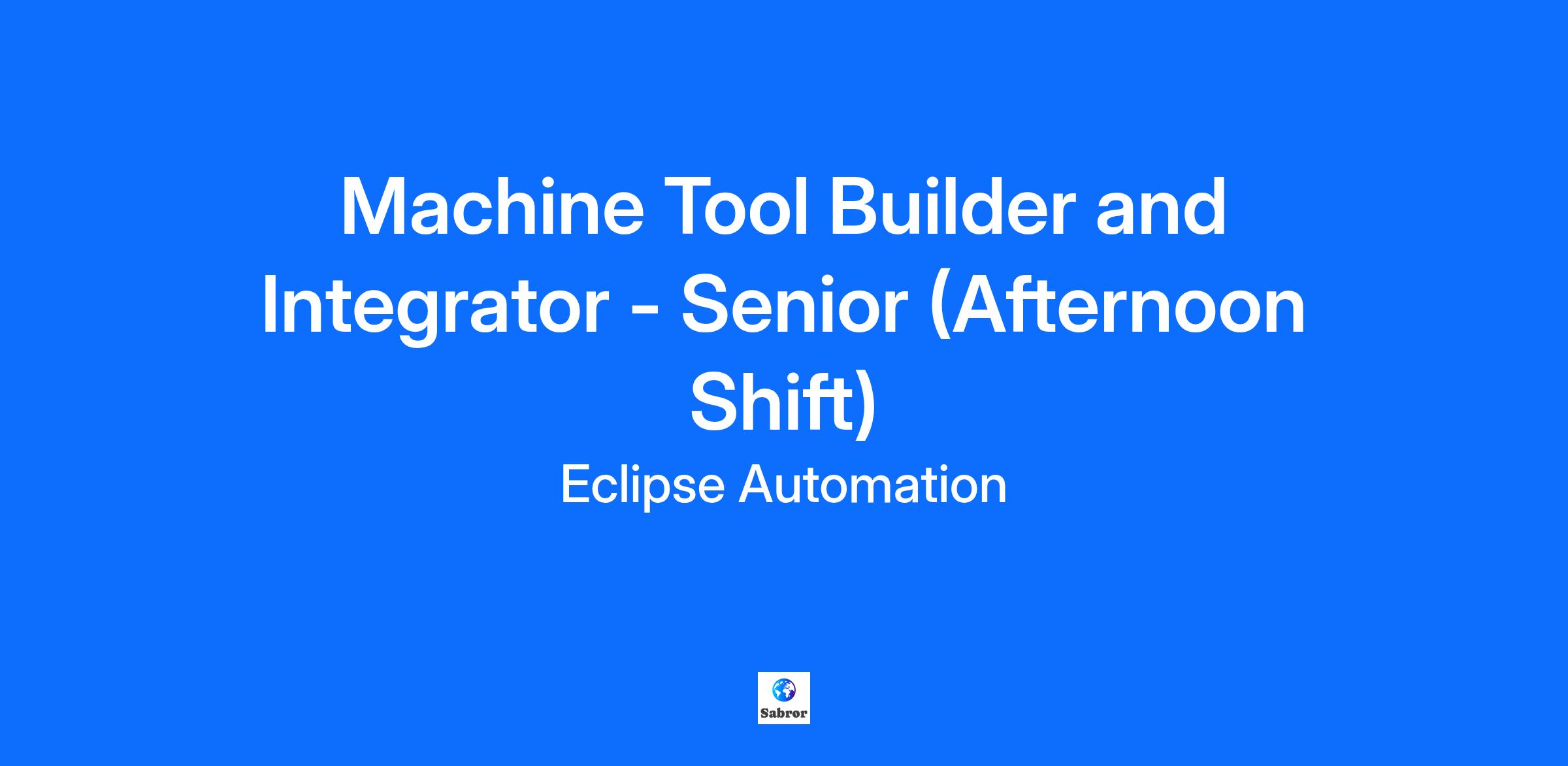 Machine Tool Builder and Integrator - Senior (Afternoon Shift)