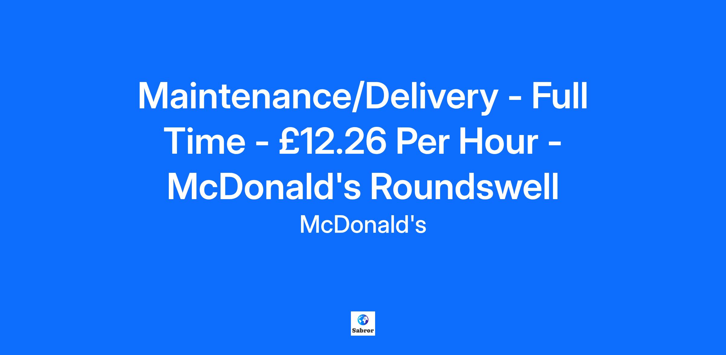 Maintenance/Delivery - Full Time - £12.26 Per Hour - McDonald's Roundswell