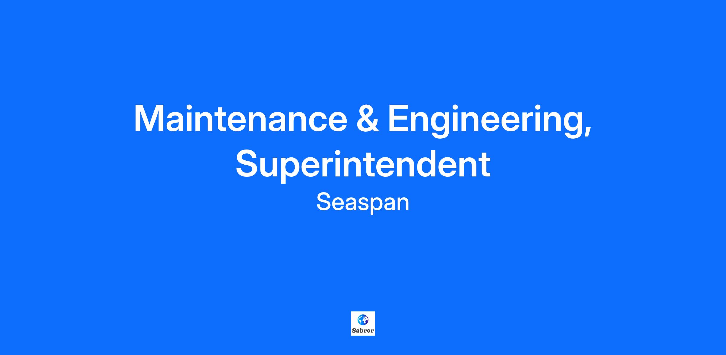 Maintenance & Engineering, Superintendent