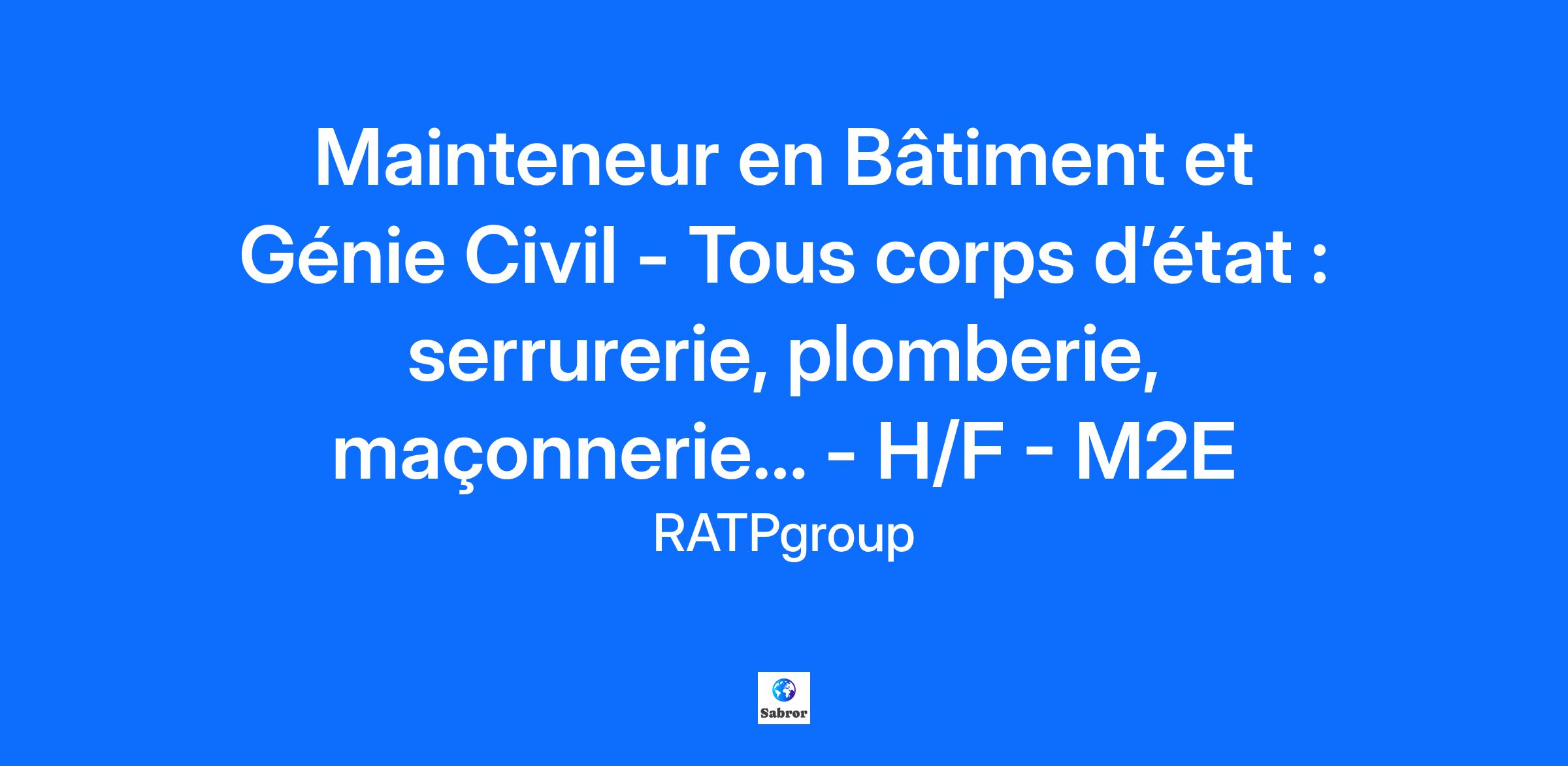 Assure la maintenance des équipements de second œuvre des gares, des stations et des bâtiments 01. Poste et Missions Principales activités du poste : Assurer le traitement des signalements de manière autonome par : L'utilisation des outils informatiques pour leur prise en charge. L’organisation des interventions La réalisation des chantiers Le renseignement des bases de données Identifier les anomalies et signaler les dysfonctionnements observés Organiser et suivre un chantier, travailler en équipe ou seul Réaliser les travaux courants de maintenance préventive et corrective dans les domaines du bâtiment (maçonnerie, carrelage, serrurerie, etc.) Effectuer les réparations nécessaires suite à des dégradations, infiltrations, fuites ou usures des équipements. Assurer l’approvisionnement des lieux et des véhicules d’interventions Respecter les consignes relatives à la sécurité ferroviaire (port des EPI, balisage des zones d’intervention, etc.) Mobilisation exceptionnelle dans le cadre du Plan de Protection contre le Risque Inondation (PPRI) Les interventions de maintenance s’effectuent en itinérance sur nos différents équipements. Compétences requises pour le poste : Savoir interpréter des schémas à partir de données techniques Appliquer des processus méthodologiques rigoureux Analyser des pannes, établir un diagnostic et rendre compte Avoir l’esprit d’équipe Etre autonome Savoir prendre des initiatives Autres exigences pour le poste : Vous êtes diplômé d'un CAP, BEP ou Bac professionnel dans le domaine du bâtiment génie civil (plomberie, maçonnerie, métallerie/serrurerie...) et titulaire du permis B. Pour relever ces défis, nous recherchons une personne : Rigoureuse Autonome Polyvalente Ayant l’esprit d’équipe et des facilités relationnelles Tous nos métiers sont ouverts aux personnes en situation de handicap (sous réserve de l’aptitude au poste) Rémunération: Le salaire est à définir selon le niveau de diplôme et l’expérience professionnelle : Pour un niveau CAP/BEP sans expérience : à partir de 2 154,20 € bruts mensuels sur 13 mois (hors primes) Pour niveau Bac professionnel sans expérience : à partir de 2 222,68 € bruts mensuels sur 13 mois (hors primes) Le niveau de rémunération peut varier selon l’expérience. A cela peuvent s’ajouter différentes primes (liées à la typologie des services, les primes de dimanches et jours fériés, la prime qualification- pénibilité ou encore la prime de non-accident). Les plus : Intéressement et épargne salariale Supplément familial de traitement (SFT) selon la composition familiale Vous voulez en savoir plus ? cliquez sur le lien suivant : https://ratpgroup.com/fr/ En intégrant le Groupe RATP, vous bénéficierez de divers avantages : Gratuité des transports en commun sur l’ensemble du réseau RATP ; Remboursement de la carte Navigo à hauteur de 90% (ou 75% pour titres de transport hors Ile-de-France) ; CE avantageux (loisirs, vacances, culture, sport, restauration…) ; 02. Profil recherché Conditions de travail : Maintenance itinérante sur la région Ile de France pour effectuer les interventions préventives et correctives, en véhicule de service ou en transports en commun. Attachements possibles : St Ouen, Montreuil ou Bagneux Horaires : 15h00 - 22h34 ou 07h24 - 15h58 Permanences Week-end (jusqu'à 6 par an) Une expérience de 2/3 ans minimum dans l'un de ses corps d'état ou en maintenance pluri-métiers est souhaitée. 03. Informations complémentaires Région :Ile de France Type de contrat : Durée Indéterminée Pourquoi choisir le groupe RATP ? Le Groupe RATP est le 3ème acteur mondial du transport public, implanté dans 15 pays et sur 5 continents. Nous rejoindre, c’est s’engager chaque jour à faire vivre les valeurs d’un service essentiel au déplacement quotidien de nos voyageurs. Tous les jours, nos 71 000 salariés à travers le monde se mobilisent pour développer, exploiter, entretenir et moderniser des systèmes de transport collectif innovants et répondre ainsi aux besoins de mobilité des villes de demain. Dans un contexte de développement des transports en commun pour un monde moins carboné, l’intérêt général guide notre engagement. Il donne du sens à nos métiers, soude les équipes et transporte nos collaboratrices et collaborateurs dans leurs carrières. En nous rejoignant, vous développerez des compétences tout au long de votre parcours professionnel au sein du groupe. Vous pourrez également saisir l’opportunité d’évoluer vers d’autres domaines, d’autres métiers grâce aux mobilités internes. Alors… pourquoi pas vous ?
