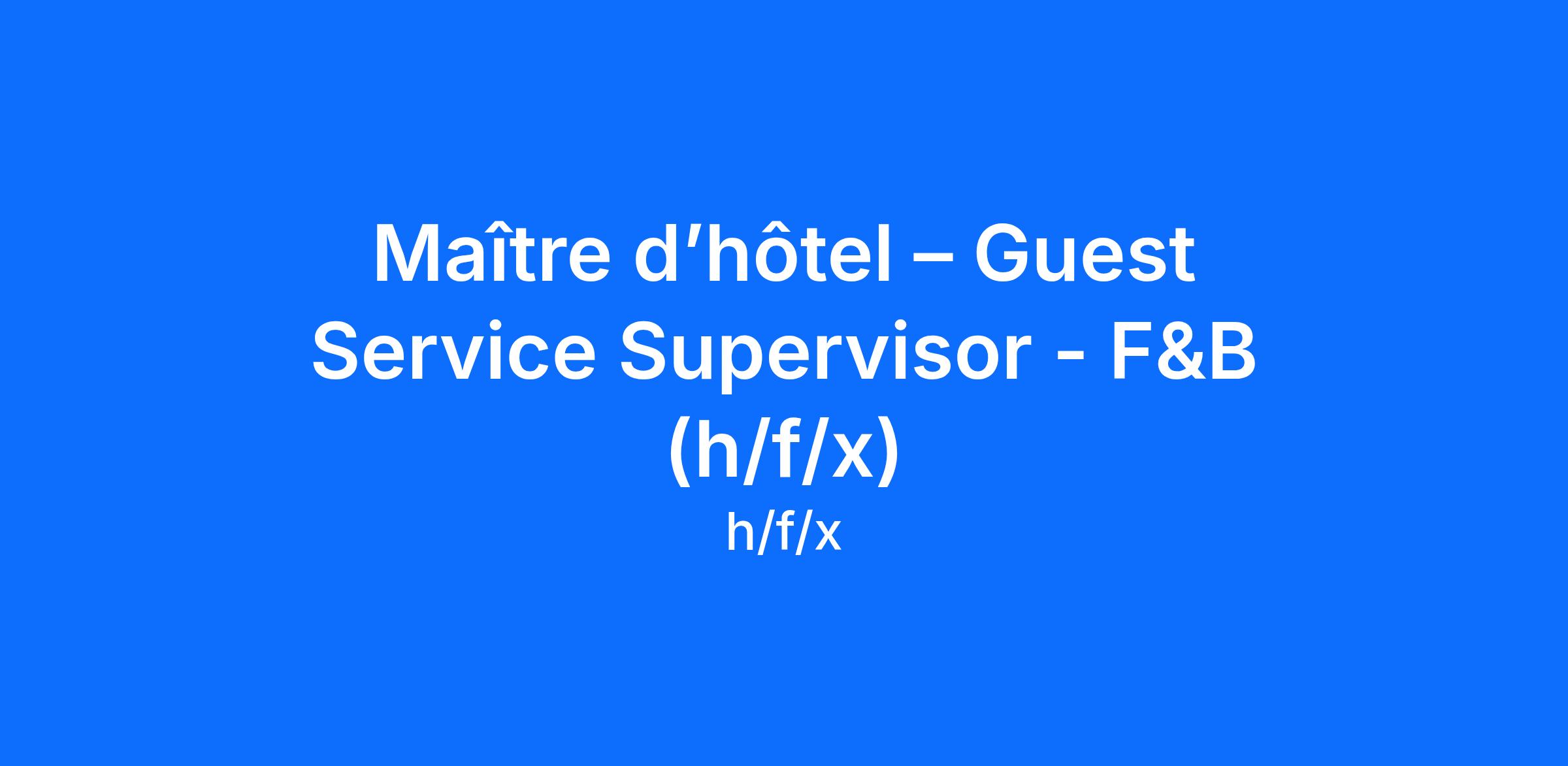 Maître d’hôtel – Guest Service Supervisor - F&B (h/f/x)