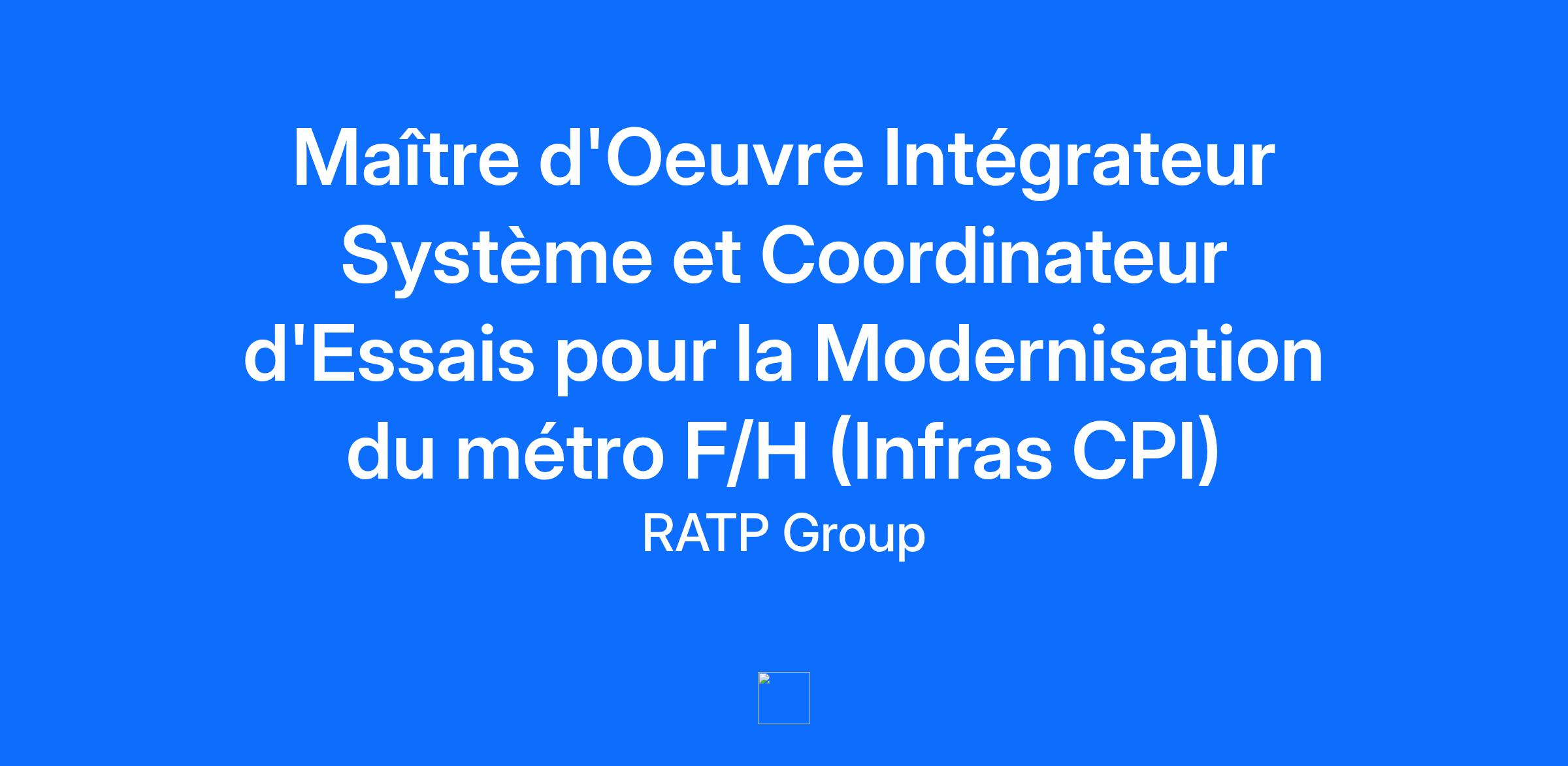 01. Poste et Missions Rejoignez-nous en tant qu’Ingénieur Maître d’œuvre Intégrateur Système pour la Modernisation du métro. La Business Unit RATP Infrastructures assure les missions de gestionnaire d'infrastructures. Elle est responsable de l'aménagement, de l'entretien et du renouvellement de l'infrastructure, et garantit dans la durée le maintien des conditions de sécurité, d'interopérabilité et de continuité du service public. Au sein du département RATP Infrastructures, à la Direction « Projets et Ingénierie », l’unité technique Conduite de Projet et Intégration a en charge les activités : - De pilotage d’un projet (coûts, délais), - D'intégration et de coordination des disciplines de maîtrise d’œuvre et livrables techniques - De coordination des essais et travaux Vous piloterez l'élaboration et la mise en œuvre globale de la prestation de Maitrise d’Œuvre. A ce titre vous coordonnez tout ou partie des activités de la maîtrise d'œuvre sous la responsabilité fonctionnelle ou hiérarchique du chef de projet (CdP) ou du Responsable de la Maitrise d’Œuvre (RMOE). Vous intervenez au niveau des interfaces techniques (coordination) et de la programmation et pilotage des essais et travaux (coordination essais et travaux). La mission de coordination travaux et essais vous conduit à maitriser les directives applicables pour la tenue des chantiers et la coordination des essais et d'être formé à la consignation électrique des Voies. 02. Profil recherché Vous êtes diplômé d'un bac +5, avez une expérience ayant trait au domaine ferroviaire d’au moins 8 ans. Pour relever ces défis, nous recherchons une personne : Expérimentée en management de projet et d'équipe Rigoureuse pour assimiler et appliquer les textes règlementaires chantiers/ essais/ sécurité Apte à prendre des décisions, à négocier et à coopérer Dotée d’une Capacité d'écoute et de gestion de situations pouvant être conflictuelles Avec un esprit d'analyse, de rédaction et de synthèse Vous vous reconnaissez ? N’hésitez pas à postuler directement en ligne Tous nos métiers sont ouverts aux personnes en situation de handicap Type de contrat : CDI Localisation : Val de Fontenay 94 120 Télétravail : oui (1 à 3 jours par semaine) #MobilitéRATP 03. Informations complémentaires Lieu : BATIMENT VAL BIENVENUE : 11 AVENUE LOUISON BOBET, 94120 FONTENAY SOUS BOIS Type de contrat : Durée Indéterminée 04. Pré-requis Diplôme : Formation requise : Langues : Expérience professionnelle : Compétences : Coordonner les activités des différents intervenants sur le chantier, Garantir la cohérence technique entre les différents lots (MOEP) de la maîtrise d’œuvre, Maîtriser la gestion économique, financière et contractuelle du projet, Maîtriser les interfaces pluridisciplinaires (systèmes de sécurité ferroviaire, génie civil, …), Vérifier la complétude du cahier des charges et des données d’entrée Pour relever ses défis et réussir sa transformation, le Groupe s'appuie sur la mobilisation de tous ses collaborateur·rice·s. Dans le cadre de la politique mobilité groupe, l’engagement a été pris de faciliter l’accès des collaborateur·rice·s. aux opportunités offertes par le Groupe pour développer leurs compétences et leur employabilité, tout en assurant à l’entreprise de disposer des ressources nécessaires à son expansion. A ce titre, vous trouverez sur cette page l’ensemble des offres de postes internes à pourvoir à l’EPIC. Vous pouvez postuler en ligne directement. A bientôt !