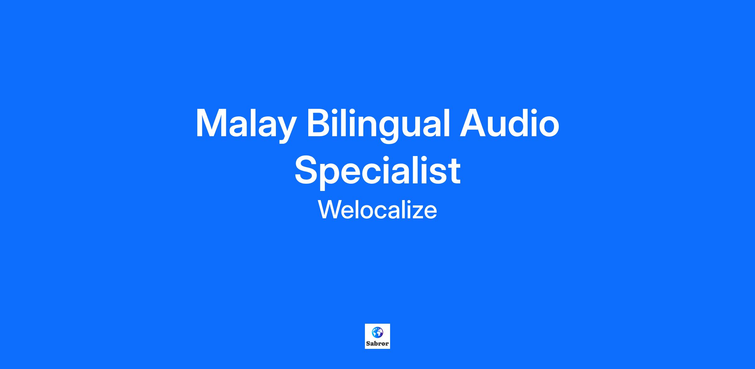 Welo Data, part of Welocalize, is a global AI data company with 500,000+ contributors delivering high-quality, ethical data to train the world’s most advanced AI systems. We’re building smarter, more human AI with a diverse community in 100+ countries. At Welo Data, Limitless AI. Limitless You. isn’t just a slogan—it’s our promise. We build smarter AI through the power of human contribution, offering limitless opportunities for our global community to grow, contribute, and work on their terms. Overview Are you fluent in two languages and passionate about high-quality audio and language data? Curious about how your voice can help shape the next generation of AI technology? We’re looking for Malay Bilingual Audio Specialists to join an upcoming audio recording project. You’ll use your native fluency in two languages to record, evaluate, and verify audio data that trains advanced AI systems to better understand and interact with human language. \n Project Details: Employment Type: Freelance / Independent Contractor Location: Remote Start Date: To be confirmed Duration: Project-based (with potential for future opportunities) Hours: Flexible – set your own schedule Languages: Multiple bilingual pairings (specify yours when applying) Pay Rate: TBD (to be confirmed upon project launch) What you will do: Record short audio clips in both of your native languages following project guidelines. Ensure recordings meet quality, clarity, and accuracy standards. Provide feedback or evaluations on audio samples as needed. Collaborate with our global community to deliver consistent, high-quality data. Requirements: Native or near-native level fluency in two languages (you will specify your pair when applying). 5+ years of consistent, real-life use of the second language. Standard accent and natural pronunciation in both languages. Comfortable speaking both languages in spontaneous conversation. Reliable internet connection and quiet environment for recording. Previous experience with audio projects or linguistic data is a plus, but not required. \n Why Join Welo Data? ✨ Limitless Flexibility: Work when it suits you. 🌱 Limitless Growth: Learn how your language skills shape global AI. 🌍 Limitless Support: Be part of a worldwide community of professionals contributing to meaningful AI projects. How to Apply: -Apply now by answering a few quick questions to share your language pair and experience. Join our growing community of contributors helping build smarter, more human AI. Questions? Contact us at TalentRequests@welocalize.com with the subject line “Application: Bilingual Audio Project.”