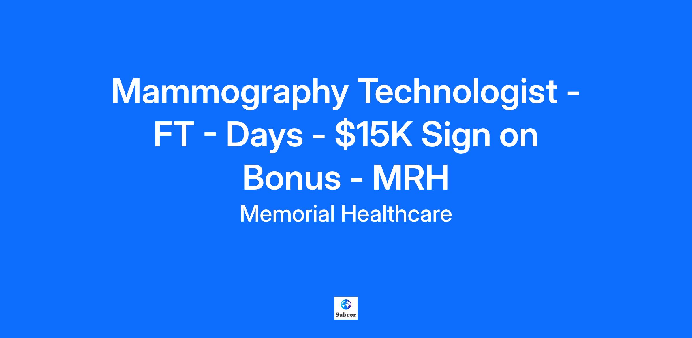 Location: Hollywood, Florida Employees in Imaging Services at #teamMHSflorida enjoy participating in an excellent, unrivaled culture. Patient safety, quality and outstanding customer service are valued above all else. Extensive teamwork and collaboration are encouraged across the modalities for the mutual benefit of improving patient outcomes and providing a rewarding experience for our employees involved in their care. Summary: Performs breast imaging procedures in accordance with applicable scope and standards of practice and with the policies, values, and mission of the organization. Responsibilities: Charges appropriately for all supplies used for procedure and utilizes appropriate exam codes.Reviews patient history and physician's orders. Educates patient regarding procedures, equipment and exam to ensure patient's understanding and cooperation.Prepares and administers contrast media and/or medications within scope of practice. Monitors patient condition continually and reports/responds to changes in status as appropriate.Prepares equipment and supplies. Selects appropriate imaging parameters. Implements safety standards and performs appropriate quality control procedures on equipment. Troubleshoots, resolves, and/or reports equipment malfunctions as necessary.Positions patient and performs imaging procedure(s). Analyzes images and identifies issues with the quality of images. Takes appropriate action to resolve image quality issues, including repositioning patient and repeating procedure if clinically appropriate. Competencies: ACCOUNTABILITY, ACCURACY & QUALITY, CUSTOMER SERVICE, IMAGE PRODUCTION, ANALYSIS AND ARCHIVAL, PATIENT AND FAMILY CENTERED CARE, PATIENT ASSESSMENT AND CARE, PATIENT POSITIONING AND PROCEDURES, RADIATION PROTECTION, RESPONDING TO CHANGE, STANDARDS OF BEHAVIOR Education and Certification Requirements: Accredited Program: Radiology (Required)ARRT_American Registry of Radiology Tech (ARRT) - American Registry of Radiologic Technologists (ARRT), BLS American Heart E-Card (BLS AHA ECARD) - American Heart Association (AMERICAN HEART), BLS American Heart RQI E-Card (BLS AHA-RQI ECARD) - American Heart Association (AMERICAN HEART), BLS Cert American Heart_non ecard (BLS AHA) - American Heart Association (AMERICAN HEART), BLS Certification Grace (BLS GRACE) - Employee Grace Period for Essential Credential (GRACE), BLS Cert Red Cross (BLS RC) - Red Cross (RED CROSS), Certified Radiologic Technologist (CRT LICENSE) - State of Florida (FL) Additional Job Information: Complexity of Work: Requires critical thinking skills, decisive judgment and the ability to work with minimal supervision. Must be able to work in a stressful environment and take appropriate action. Required Work Experience: One (1) year of technologist experience in a healthcare setting. Other Information: **Registered as a Technologist (RT) and registered in mammography (M) by the American Registry of Radiologic Technologists (ARRT).Additional Education Info: Graduate of an accredited Radiologic Technologist programAdditional Credential Info: Registered as a Technologist (RT) and registered in mammography (M) by the American Registry of Radiologic Technologists (ARRT). Working Conditions and Physical Requirements: Bending and Stooping = 60% Climbing = 0% Keyboard Entry = 60% Kneeling = 20% Lifting/Carrying Patients 35 Pounds or Greater = 20% Lifting or Carrying 0 - 25 lbs Non-Patient = 20% Lifting or Carrying 2501 lbs - 75 lbs Non-Patient = 20% Lifting or Carrying > 75 lbs Non-Patient = 0% Pushing or Pulling 0 - 25 lbs Non-Patient = 20% Pushing or Pulling 26 - 75 lbs Non-Patient = 20% Pushing or Pulling > 75 lbs Non-Patient = 20% Reaching = 60% Repetitive Movement Foot/Leg = 40% Repetitive Movement Hand/Arm = 40% Running = 0% Sitting = 40% Squatting = 40% Standing = 60% Walking = 60% Audible Speech = 80% Hearing Acuity = 80% Smelling Acuity = 0% Taste Discrimination = 0% Depth Perception = 80% Distinguish Color = 80% Seeing - Far = 80% Seeing - Near = 80% Bio hazardous Waste = 20% Biological Hazards - Respiratory = 20% Biological Hazards - Skin or Ingestion = 20% Blood and/or Bodily Fluids = 60% Communicable Diseases and/or Pathogens = 20% Asbestos = 0% Cytotoxic Chemicals = 0% Dust = 0% Gas/Vapors/Fumes = 0% Hazardous Chemicals = 20% Hazardous Medication = 0% Latex = 20% Computer Monitor = 60% Domestic Animals = 0% Extreme Heat/Cold = 0% Fire Risk = 20% Hazardous Noise = 0% Heating Devices = 0% Hypoxia = 0% Laser/High Intensity Lights = 0% Magnetic Fields = 0% Moving Mechanical Parts = 60% Needles/Sharp Objects = 40% Potential Electric Shock = 20% Potential for Physical Assault = 0% Radiation = 20% Sudden Decompression During Flights = 0% Unprotected Heights = 0% Wet or Slippery Surfaces = 20% Shift: Days Disclaimer: This job description is not intended, nor should it be construed to be an exhaustive list of all responsibilities, skills, efforts or working conditions associated with the job. It is intended to indicate the general nature and level of work performed by employees within this classification. Wages shown on independent job boards reflect market averages, not specific to any employer. We encourage candidates to talk to their Memorial Healthcare System recruiter to discuss actual pay rates, during the hiring process. Memorial Healthcare System is proud to be an equal opportunity employer committed to workplace diversity. Memorial Healthcare System recruits, hires and promotes qualified candidates for employment opportunities without regard to race, color, age, religion, gender, gender identity or expression, sexual orientation, national origin, veteran status, disability, genetic information, or any factor prohibited by law. We are proud to offer Veteran’s Preference to former military, reservists and military spouses (including widows and widowers). You must indicate your status on your application to take advantage of this program. Employment is subject to post offer, pre-placement assessm