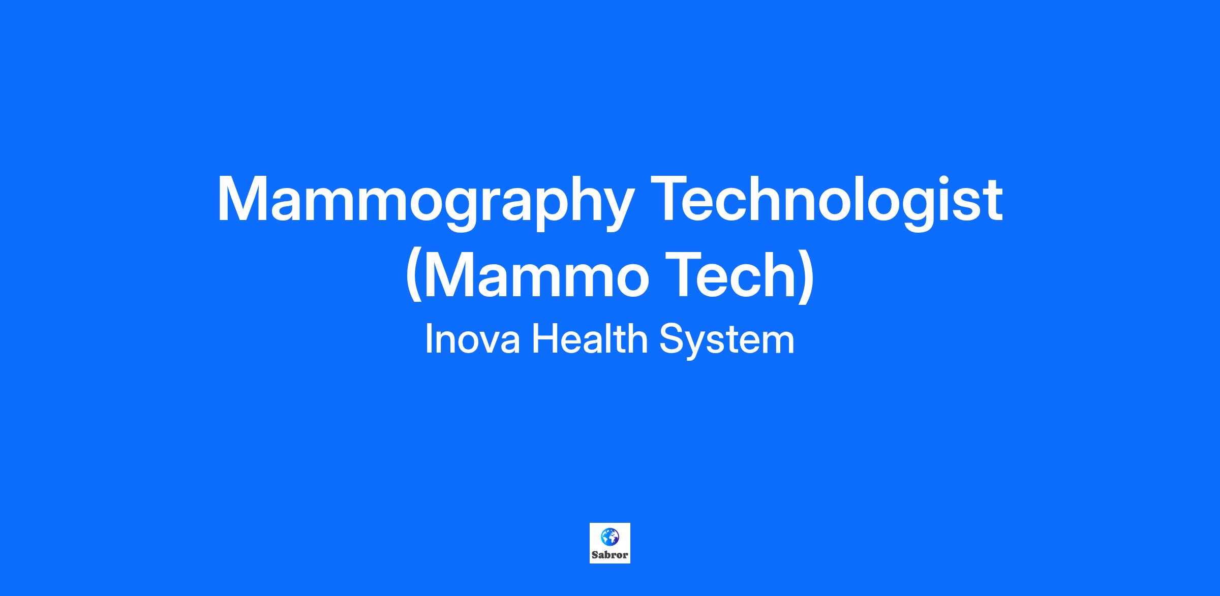DescriptionInova Mount Vernon Hospital is looking for a dedicated Mammography Technologist (Mammo Tech) to join the team. This role will be full-time day shift from Monday – Friday 8:30am to 5pm . Sign-on bonus and relocation assistance eligible.