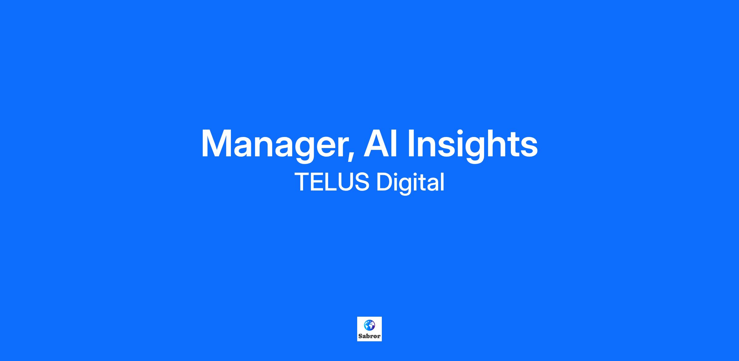 We are seeking a dynamic and forward-thinking Manager, AI Insights to lead a group of talented data scientists and AI engineers. This role is ideal for someone with a proven track record of applying AI to solve real business problems, a passion for bringing people and ideas together, and the ability to inspire teams to deliver measurable business impact.