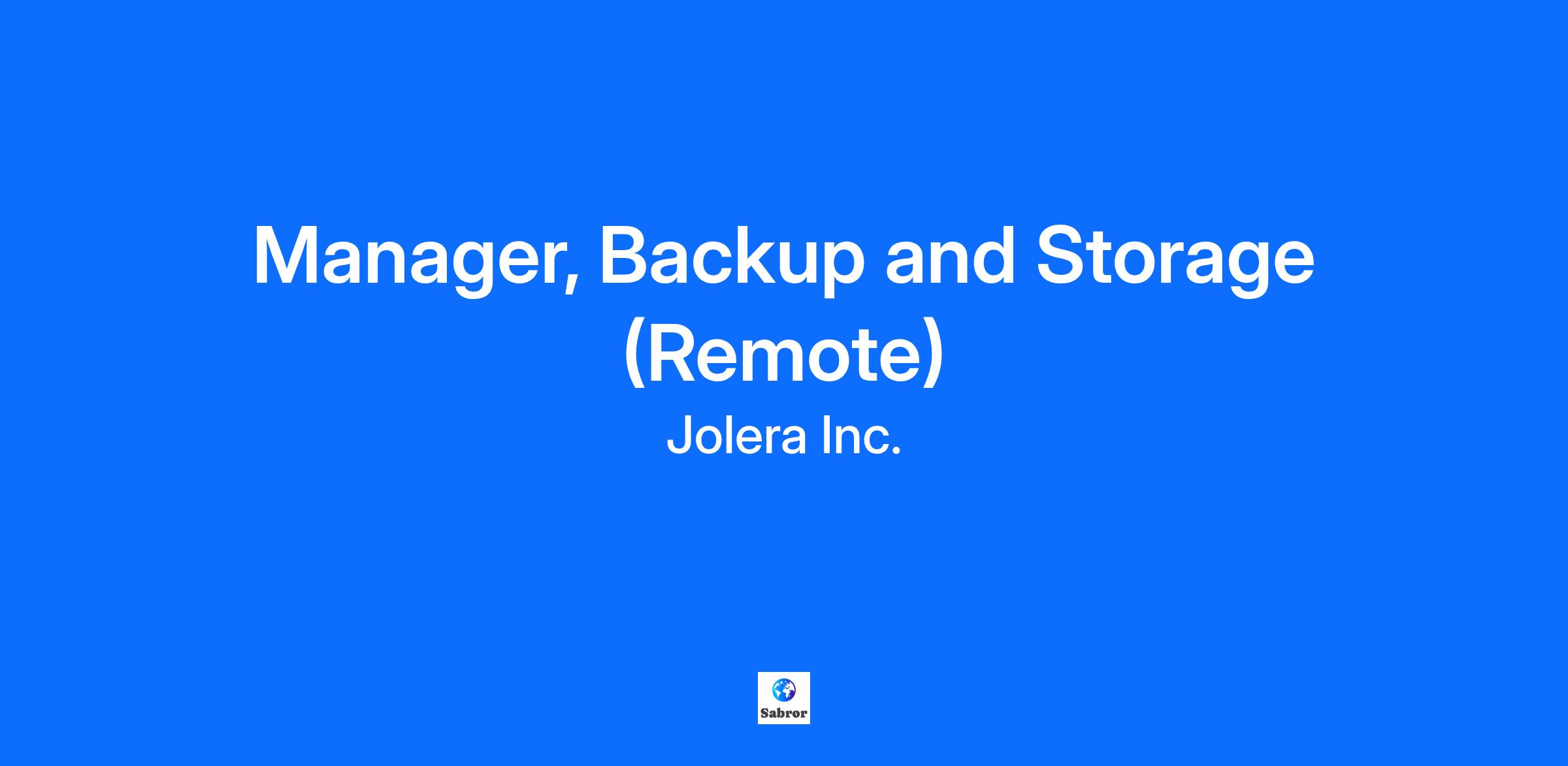 Manager, Backup and Storage (Remote)