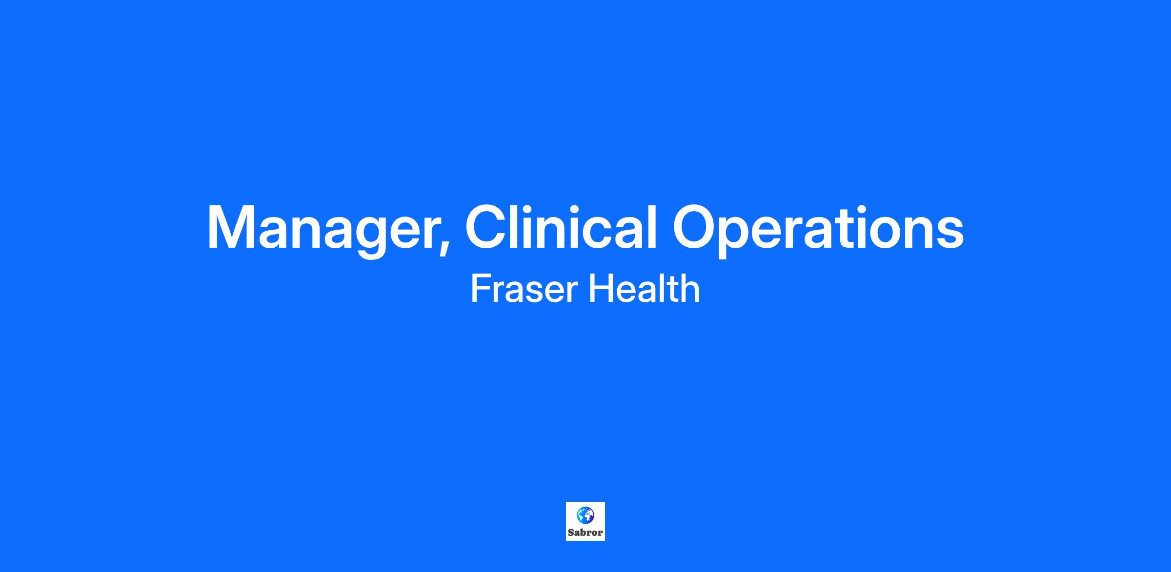 Salary The salary range for this position is CAD $54.16 - $77.86 / hour Job Summary We are currently hiring for a Full Time Manager, Clinical Operations to join our Renal Services team at Surrey Memorial Hospital located in Surrey, B.C. Connect with us! Joining our team offers you opportunities to work in a rapidly growing organization with health professionals who are excellent in their respective fields. Fraser Health offers opportunities for career growth and advancement and competitive benefits, including but not limited, to: Four weeks of vacation to start Comprehensive 100% employer paid benefits Immediate enrollment in a defined municipal pension plan 87% maternity top-up 50% subsidy on Translink passes *Eligibility based on employment status We invite you to apply today and find out why employees recommend Fraser Health to their friends as an exceptional place to work. We are committed to planetary health, we value diversity in the work force and seek to maintain an environment of Respect, Caring and Trust. Connect with us on our Careers social channels where you’ll learn about exciting opportunities, get career tips from our recruiters, and meet some of your future team members! You can also visit us on Indeed and Glassdoor. Instagram | Facebook | LinkedIn | X Detailed Overview Supporting the Vision, Values, Purpose and Commitments of Fraser Health including service delivery that is centered around patients/clients/residents and families: Reporting to assigned Director(s), Clinical Operations, the Manager is accountable for managing and providing leadership for assigned clinical operation(s) through the leadership provided to staff, or the management of service contracts with contracted agencies. Through the direct leadership and management of people and resources, the manager oversees the operational, administrative activities of a clinical operation(s); or, supports the operation of clinical services supports for services as provided through contracted agencies. The Manager fosters an environment that empowers and supports individuals to provide safe, quality care; or ensures service contracts meet performance criteria that include safe, quality care. Ensures clinical operation(s) at a site/community area or across sites/community areas are delivered in an effective and efficient manner through consultative advice on clinical services(s) design, policies and procedures, management and leadership or contract management. Maintains effective communications, and where assigned a dual reporting structure, prioritizes and advises on the status of clinical services(s) objectives. Responsibilities Manages resources through the development of operating and capital budgets, review of expenses and the development of action plans. Reviews contracted agency budgets in terms of established contract performance criteria and liaises with agency to establish required action plans. Provides leadership of people to foster an environment that is supportive of engagement, innovation, individual and team achievements and the provision of safe, quality care. Recruits people, provides leadership and mentorship on individual leadership and development plans, and provides regular, ongoing, clear and meaningful feedback to provide recognition and to address performance improvement. Reviews Fraser Health workplace indicators in areas such as retention, engagement, safety, absenteeism and overtime, and establishes department objectives and action plans . Provides leadership for quality care, identifies risks and action plans in terms of clinical/department outcomes. Interprets, applies and ensures operational and service contract plans meet accepted operational and/or contractual requirements, professional standards, collective agreement or other standards and legislated/contractual obligations. Investigates and responds to complaints or grievances. Represents the Department in third party venues. Establishes and maintains effective working relationships, ongoing communications with medical staff, other departments at and across sites/community areas and other internal and external stakeholders. Participates in strategic planning, clinical services development and the development of short and long term tactical clinical, operational or service plans. Assesses and advises on conflicts in terms of operational plans where leading clinical services that report up to more than one Director. Acts as a resource to care teams, provides expert consultative advice to other health care practitioners and acts as a resource for the assigned clinical operation(s) or service contracts. Acts as an advocate for patients/residents/clients and families; responds to issues in the area of clinical operations to internal and external stakeholders and agencies; ensures compliance of the complaint review and audit process. Co-ordinates, participates or facilitates research initiatives taking an interdisciplinary and consultative approach. Participates in the development and maintenance of administrative and clinical information systems; ensures Fraser Health, government and regulatory reporting requirements are met. Chairs and/or participates on committees; prepares status reports to update the Director(s) and/or develops recommendations on follow up action to be taken; implements approved recommendations. Participates in the development, implementation and negotiation of essential service contingency plans. Ensures Director(s) is/are informed of and aware of significant events and activities in the area(s) of responsibility. Qualifications Education and Experience Completion of an undergraduate degree in health sciences or related field, plus seven (7) years' recent related experience, including two (2) years in a leadership role; or an equivalent combination of education, training and experience. Competencies Demonstrates the leadership practices of the Fraser Health Leadership Framework of Clear, Caring and Courageous and c