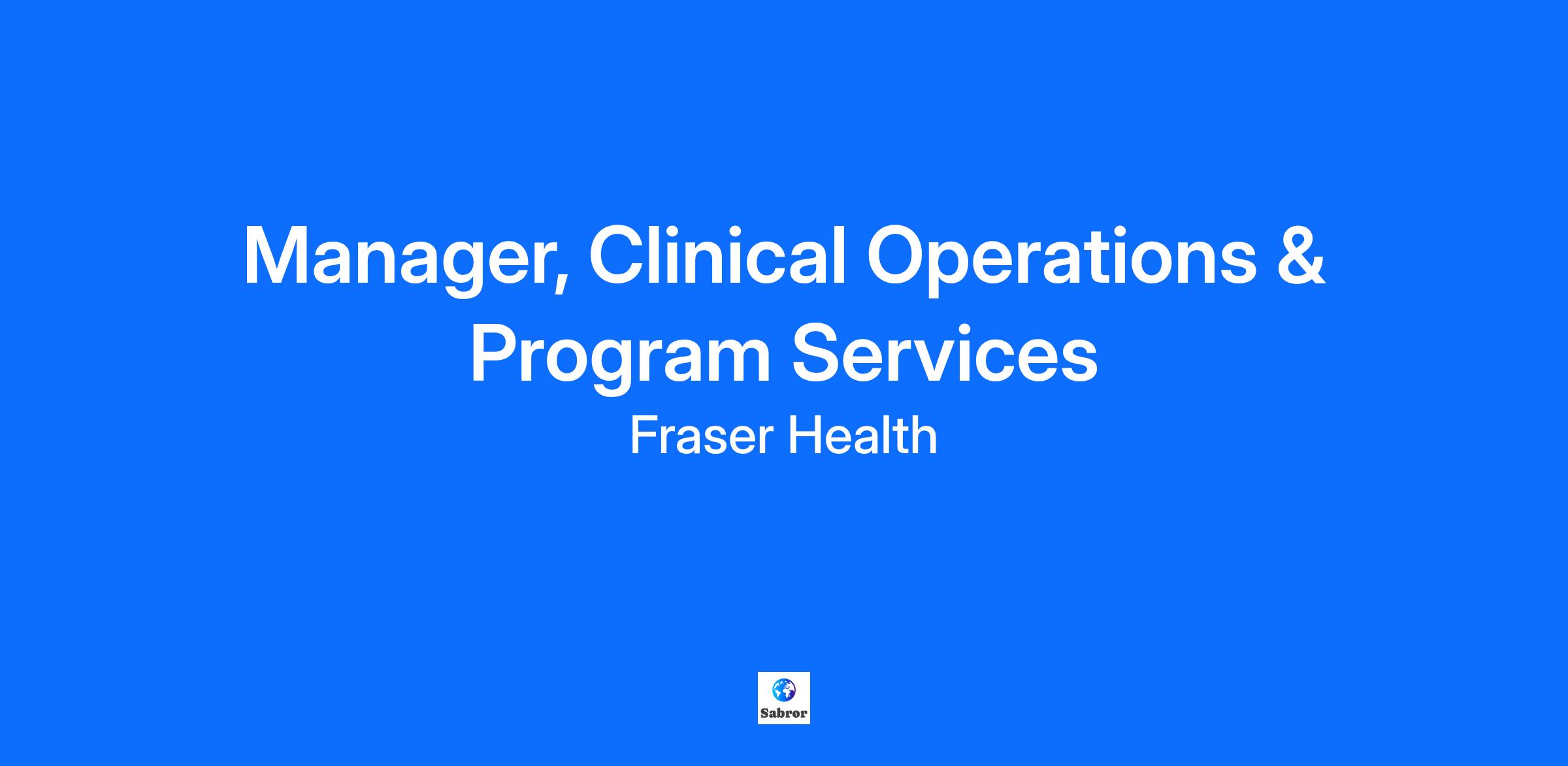 Salary The salary range for this position is CAD $59.56 - $85.62 / hour Job Summary We are hiring a Full Time Manager, Clinical Operations & Program Services to join our team in Maple Ridge/Pitt Meadows, B.C. areas. We invite you to apply today and find out why employees recommend Fraser Health to their friends as an exceptional place to work. We are committed to planetary health, we value diversity in the work force and seek to maintain an environment of Respect, Caring and Trust. Joining our team offers you opportunities to work in a rapidly growing organization with health professionals who are excellent in their respective fields. Fraser Health offers opportunities for career growth and advancement and competitive benefits, including but not limited, to: Comprehensive, 100% Employer-Paid Benefits: Enjoy peace of mind with full coverage. Generous Vacation Time: Eligible employees can earn up to four weeks of vacation to recharge and relax. Benefit Portability: Seamlessly transfer your benefits from another HEABC employer. Immediate Pension Enrollment: Secure your future with a defined municipal pension plan from day one. Maternity Top-Up: Receive an 87% top-up during maternity leave. TransLink Pass Subsidy: Save on commuting costs with a 50% subsidy on TransLink passes. Additional employee discounts and perks available. *Eligibility based on employment status. Take the next step and apply so we can continue the conversation with you. Detailed Overview Supporting the Vision, Values, Purpose and Commitments of Fraser Health including service delivery that is centered around patients/clients/residents and families: Reporting to assigned Director(s), Clinical Operations, the Manager is accountable for managing and providing clinical and operational leadership to a front-line patient care department or health program that is delivered through multi-disciplinary health care teams in a hospital and/or community based direct patient/client care setting. The Manager is responsible for large assigned clinical operation(s) and program service(s) through the leadership provided to staff, or the management of service contracts with contracted agencies. The Manager must directly supervise Nurses at the Level 4 or 5 classification/wage rate. Through the direct leadership and management of people and resources, the manager oversees the operational, administrative activities of a clinical operation or program service; or, supports the operation of clinical services supports for services as provided through contracted agencies. The Manager fosters an environment that empowers and supports individuals to provide safe, quality care; or ensures service contracts meet performance criteria that include safe, quality care. Ensures clinical operation(s) and program service(s) at a site/community area or across sites/community areas are delivered in an effective and efficient manner through consultative advice on clinical services(s) design, policies and procedures, management and leadership or contract management. Maintains effective communications, and where assigned a dual reporting structure, prioritizes and advises on the status of clinical services(s) objectives. Responsibilities Manages resources through the development of operating and capital budgets, review of expenses and the development of action plans. Reviews contracted agency budgets in terms of established contract performance criteria and liaises with agency to establish required action plans. Provides leadership of people to foster an environment that is supportive of engagement, innovation, individual and team achievements and the provision of safe, quality care. Provides direct supervision to Nurses at the Level 4 or 5 classification/wage rate. Recruits people, provides leadership and mentorship on individual leadership and development plans, and provides regular, ongoing, clear and meaningful feedback to provide recognition and to address performance improvement. Reviews Fraser Health workplace indicators in areas such as retention, engagement, safety, absenteeism and overtime, and establishes department objectives and action plans. Provides leadership for quality care, identifies risks and action plans in terms of clinical/department outcomes and acts as a change agent within the service, fostering an environment of innovation and critical thinking. Interprets, applies and ensures operational and service contract plans meet accepted operational and/or contractual requirements, professional standards, collective agreement or other standards and legislated/contractual obligations. Investigates and responds to complaints or grievances. Represents the Department in third party venues. Establishes and maintains effective working relationships, ongoing communications with medical staff, other departments at and across sites/community areas and other internal and external partners. Coordinates the utilization of shared resources including services, equipment, and space with other departments and/or sites. Participates in strategic operational initiatives, project planning, clinical services development and the development of short and long term tactical clinical, operational or service plans. Assesses and advises on conflicts in terms of operational plans where leading a clinical operation and program service that report up to more than one Director. Acts as a resource to care teams, provides expert consultative advice to other health care practitioners and acts as a resource for the assigned clinical operation(s), program services(s) or service contracts. Acts as an advocate for patients/residents/clients and families; responds to issues in the area of clinical operations to internal and external partners and agencies; ensures compliance of the complaint review and audit process. Co-ordinates, participates or facilitates research initiatives taking an interdisciplinary and consultative approach. Identifies emerging best practices and technologi