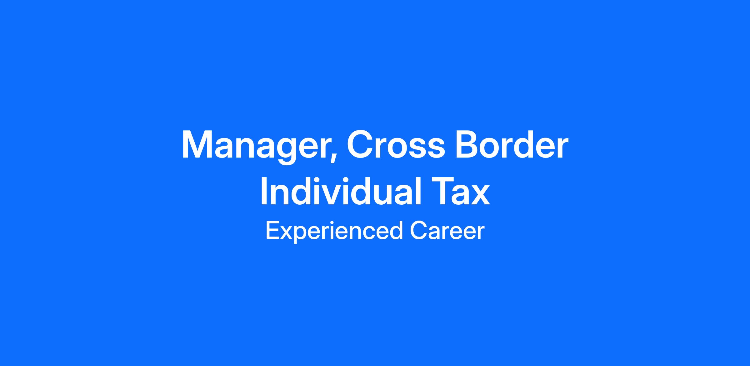 Make an impact on our Cross Border Individual Tax team as a Manager. This diverse team of professionals delivers customized tax strategies within a complex and dynamic regulatory framework. As a trusted advisor, you’ll provide tax advice on domestic and foreign assignments that empowers client organizations and their employees to maintain regulatory compliance and mitigate risk.