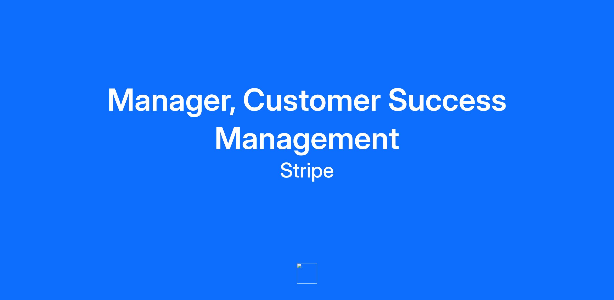 Who we are About Stripe Stripe is a financial infrastructure platform for businesses. Millions of companies - from the world’s largest enterprises to the most ambitious startups - use Stripe to accept payments, grow their revenue, and accelerate new business opportunities. Our mission is to increase the GDP of the internet, and we have a staggering amount of work ahead. That means you have an unprecedented opportunity to put the global economy within everyone's reach while doing the most important work of your career. About the team Our users are the heart of our business. Stripe’s Global Customer Success Team is responsible for managing our largest and most strategic relationships, such as Lyft, Doordash, and Shopify. What you’ll do In this manager role you’ll be responsible for a high-performing team of Customer Success Managers. You’ll lead and coach the team, helping them deliver on ambitious targets, as well as roll up your sleeves to work directly with executives at existing enterprise Stripe customers. Responsibilities Recruit, train, and lead a team of Customer Success Managers Help drive an engagement model focused on high growth accounts Develop both the long-term vision and strategy for the team and drive progress toward key metrics Be accountable for increasing revenue, managing day-to-day operations, and scaling the team Coach, mentor, and guide the team in developing consultative and solution-based customer success and sales skills Effectively work cross-functionally across the organization to shape Stripe’s solutions to meet client needs Inspire, motivate, and enable individual development to promote career growth of direct reports Who you are The ideal candidate for this role will be a self-starter who has demonstrated success dealing with ambiguity, operating in a high-growth environment, and solving complicated problems with limited oversight. They will have management and leadership experience scaling a technology sales team, superior communication skills, and a knack for understanding unique customer needs. We’re looking for someone who meets the minimum requirements to be considered for the role. If you meet these requirements, you are encouraged to apply. The preferred qualifications are a bonus, not a requirement. Minimum requirements 7-10 years of technology sales or account management experience with 3-5 years of people management experience Experience leading sales, account management and operations in an early stage, high-growth technology environment Ability to hire, train, and coach a high-performance Customer Success team Ability to support the Customer Success Managers’ efforts through strategic advice on account strategies, and serving as executive sponsor with key relationships Demonstrated passion for Stripe’s mission Preferred qualifications Prior experience leading a scaled customer success team Prior experience at a growth stage Internet/software company Payments experience Prior experience in customer success, enterprise account management, partnerships and/or business development