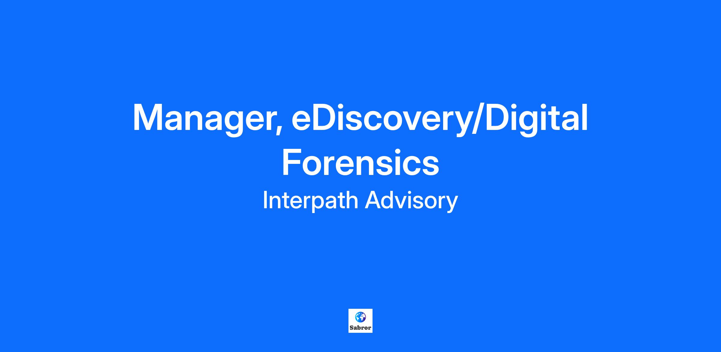 Manager, eDiscovery/Digital Forensics
