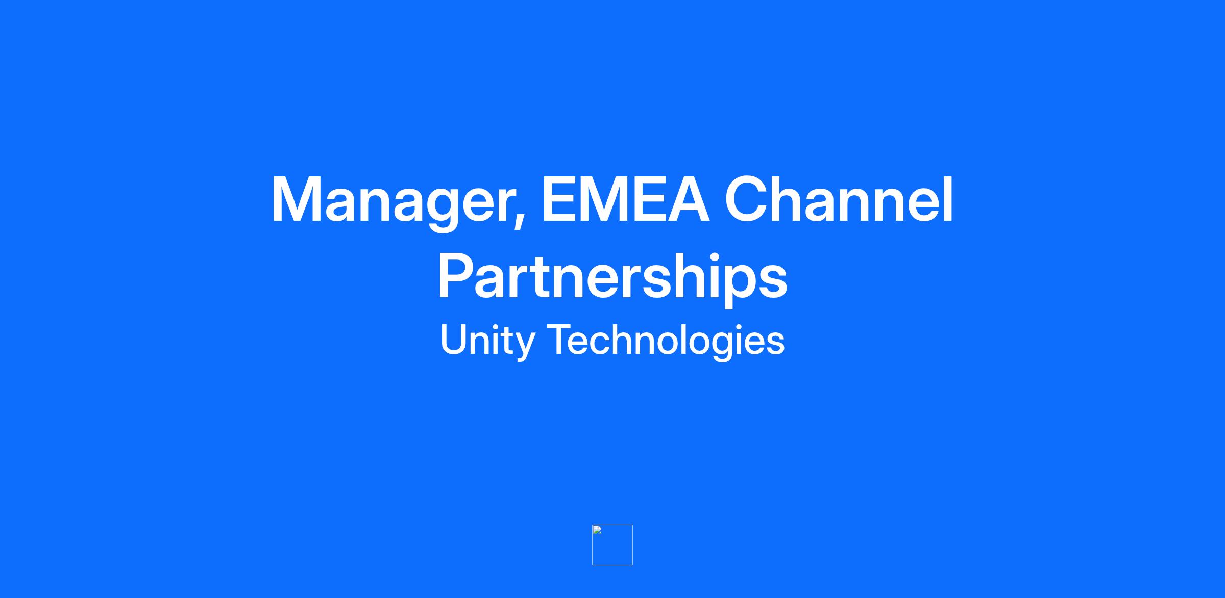 The opportunity This is a high-impact role within Unity’s Channel organization, designed for a leader ready to drive strategy and execution across Europe and the Middle East. Unity’s Channel organization sits within Global Partnerships and is responsible for a significant percentage of all Industry revenue for Unity globally. Within EMEA, we are actively increasing the team to support this rapid growth. As the Manager for EMEA, you will report directly to the Global Channel Lead and serve as a vital part of the Channel leadership team. You will have the autonomy to not only drive short-term success through the retirement of revenue targets but also help shape the medium and long-term strategic direction for Channel at Unity. Unity has massive potential within the Industry sector, and with a sharpened focus on Partnerships, you will play a key part in defining the future of our success. What you'll be doing Manage, mentor, and lead a regional team of Partner Account Managers based in Europe and the Middle East. Build and drive the regional channel strategy to ensure the consistent retirement and overachievement of EMEA revenue targets. Play a critical role within the Channel leadership team, using market insights to shape the medium-to-long-term direction of Unity’s partner ecosystem. Collaborate hand-in-glove with Unity’s Direct Sales organizations to develop and execute robust co-selling strategies. Lead the forecasting, pipeline management, and reporting cadence for the region, ensuring the Global Channel Lead has clear visibility into EMEA performance. What we're looking for Proven professional background in sales, with experience functioning as both an Individual Contributor and a People Manager. Comprehensive understanding of the 3D technology landscape, specifically within the Real-time 3D (RT3D), CAD, or Product Lifecycle Management (PLM) markets. Demonstrated familiarity with key B2B industries, particularly Engineering, Manufacturing, and Architecture, Engineering & Construction (AEC). Track record of building and executing Go-To-Market strategies that successfully scale revenue through indirect partners. You might also have Fluency in more than one language to support cross-regional business. Existing knowledge of Unity for Industry and an understanding of our market fit. Previous experience specifically managing a Channel organization. Additional information Relocation support is not available for this position Work visa/immigration sponsorship is not available for this position Life at Unity We offer a wide range of benefits designed to support employees' well-being and work-life balance. You can read more about them on our career page. Unity [NYSE: U] is the leading platform to create and grow games and interactive experiences. Creators, ranging from game developers to artists, architects, automotive designers, infrastructure experts, filmmakers, and more, use Unity to bring their imaginations to life across multiple platforms, from mobile, PC, and console, to spatial computing. As of the third quarter of 2024, more than 70% of the top 1,000 mobile games were made with Unity, and in 2024, Made with Unity applications had an average of 3.7 billion downloads per month. For more information, please visit Unity. Unity is a proud equal opportunity employer. We are committed to fostering an inclusive, innovative environment and celebrate our employees across age, race, color, ancestry, national origin, religion, disability, sex, gender identity or expression, sexual orientation, or any other protected status in accordance with applicable law. Our differences are strengths that enable us to support the growing and evolving needs of our customers, partners, and collaborators. If you have a disability that means there are preparations or accommodations we can make to help ensure you have a comfortable and positive interview experience, please fill out this form to let us know. This position requires the incumbent to have a sufficient knowledge of English to have professional verbal and written exchanges in this language since the performance of the duties related to this position requires frequent and regular communication with colleagues and partners located worldwide and whose common language is English. Headhunters and recruitment agencies may not submit resumes/CVs through this website or directly to managers. Unity does not accept unsolicited headhunter and agency resumes. Unity will not pay fees to any third-party agency or company that does not have a signed agreement with Unity. Your privacy is important to us. Please take a moment to review our Prospect Privacy Policy and Applicant Privacy Policy. Should you have any concerns about your privacy, please contact us at DPO@unity.com. #SEN