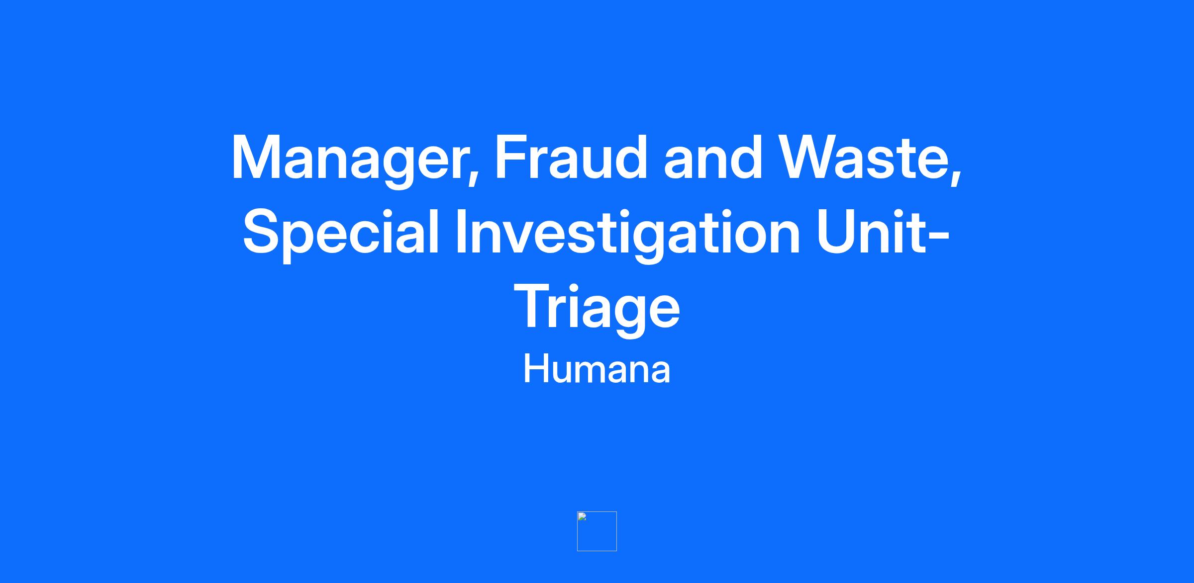 Become a part of our caring community and help us put health first The Manager, Fraud and Waste conducts investigations of allegations of fraudulent and abusive practices. The Manager, Fraud and Waste works within specific guidelines and procedures; applies advanced technical knowledge to solve moderately complex problems; receives assignments in the form of objectives and determines approach, resources, schedules and goals. Where You Come In The Manager, Fraud and Waste coordinates investigation with law enforcement authorities. Assembles evidence and documentation to support successful adjudication, where appropriate. Conducts on-site audits of provider records ensuring appropriateness of billing practices. Prepares complex investigative and audit reports. Decisions are typically related to resources, approach, and tactical operations for projects and initiatives involving own departmental area. Requires cross departmental collaboration, and conducts briefings and area meetings; maintains frequent contact with other managers across the department. What Humana Offers We are fortunate to offer a remote opportunity for this job. Our Fortune 100 Company values associate engagement & your well-being. We also provide excellent professional development & continued education. Use your skills to make an impact Required Qualifications – What it takes to Succeed Bachelor's Degree Minimum of 3 yrs health insurance claims or Medicare experience Minimum 3 years of experience with Fraud, Waste, and Abuse in either a Managed Care or a government setting Minimum 3 years of proven leadership skills and significant experience directly managing a group of seasoned professionals. Proven knowledge in Medicare regulations Excellent PC skills MS Excel and Access and PowerPoint required Excellent communication skills, written and verbal Strong organizational and project management skills Strong Analytical skills Core business hours align to Eastern Standard Time (EST) Able to analyze large amount of data Must be passionate about contributing to an organization focused on continuously improving consumer experiences Preferred Qualifications Certifications (BA, MBA, J.D., MSN, Clinical Certifications, CPC, CCS, CFE, AHFI) Understanding of healthcare industry, claims processing and internal investigative process development Experience in a corporate environment and understanding of business operations Additional Information - How we Value You Benefits starting day 1 of employment Competitive 401k match Generous Paid Time Off accrual Tuition Reimbursement Parent Leave SSN Alert Statement Humana values personal identity protection. Please be aware that applicants may be asked to provide their Social Security Number, if it is not already on file. When required, an email will be sent from Humana@myworkday.com with instructions on how to add the information into your official application on Humana’s secure website. WAH Internet Statement To ensure Home or Hybrid Home/Office employees’ ability to work effectively, the self-provided internet service of Home or Hybrid Home/Office employees must meet the following criteria: At minimum, a download speed of 25 Mbps and an upload speed of 10 Mbps is required; wireless, wired cable or DSL connection is suggested. Satellite, cellular and microwave connection can be used only if approved by leadership. Employees who live and work from Home in the state of California, Illinois, Montana, or South Dakota will be provided a bi-weekly payment for their internet expense. Humana will provide Home or Hybrid Home/Office employees with telephone equipment appropriate to meet the business requirements for their position/job. Work from a dedicated space lacking ongoing interruptions to protect member PHI / HIPAA information. Travel: While this is a remote position, occasional travel to Humana's offices for training or meetings may be required. Scheduled Weekly Hours 40 Pay Range The compensation range below reflects a good faith estimate of starting base pay for full time (40 hours per week) employment at the time of posting. The pay range may be higher or lower based on geographic location and individual pay will vary based on demonstrated job related skills, knowledge, experience, education, certifications, etc. $78,400 - $107,800 per year This job is eligible for a bonus incentive plan. This incentive opportunity is based upon company and/or individual performance. Description of Benefits Humana, Inc. and its affiliated subsidiaries (collectively, “Humana”) offers competitive benefits that support whole-person well-being. Associate benefits are designed to encourage personal wellness and smart healthcare decisions for you and your family while also knowing your life extends outside of work. Among our benefits, Humana provides medical, dental and vision benefits, 401(k) retirement savings plan, time off (including paid time off, company and personal holidays, volunteer time off, paid parental and caregiver leave), short-term and long-term disability, life insurance and many other opportunities. Application Deadline: 01-02-2026 About us Humana Inc. (NYSE: HUM) is committed to putting health first – for our teammates, our customers and our company. Through our Humana insurance services and CenterWell healthcare services, we make it easier for the millions of people we serve to achieve their best health – delivering the care and service they need, when they need it. These efforts are leading to a better quality of life for people with Medicare, Medicaid, families, individuals, military service personnel, and communities at large. Equal Opportunity Employer It is the policy of Humana not to discriminate against any employee or applicant for employment because of race, color, religion, sex, sexual orientation, gender identity, national origin, age, marital status, genetic information, disability or protected veteran status. It is also the policy of Humana to take affirmative acti