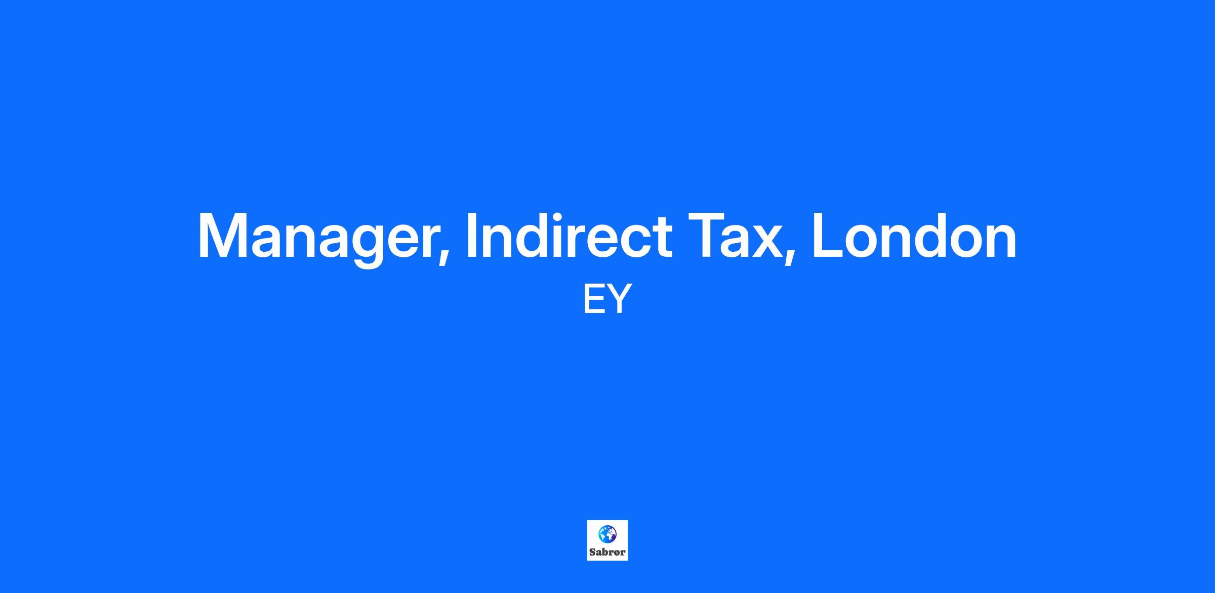 Manager, Indirect Tax, London