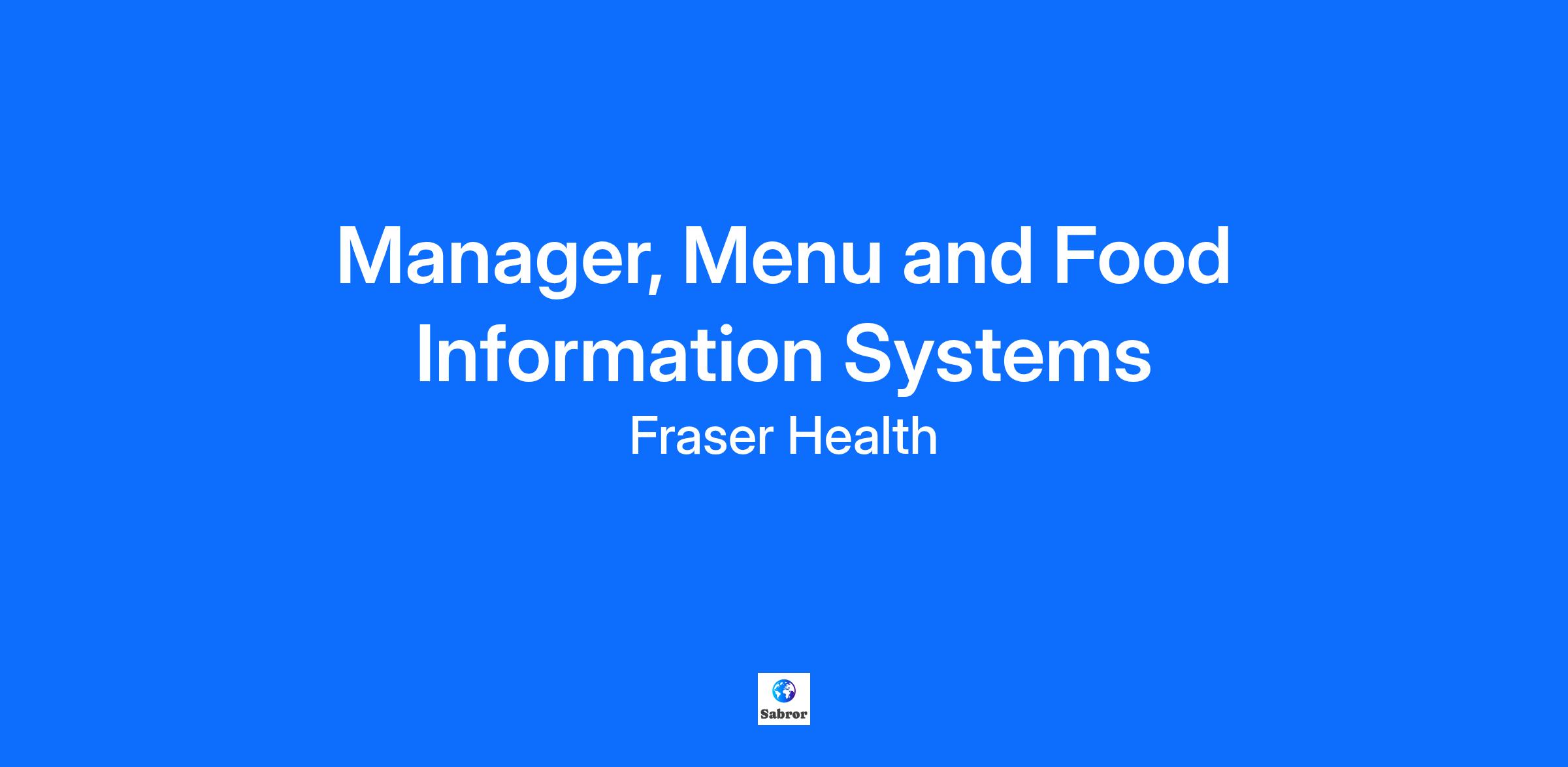 Salary The salary range for this position is CAD $54.16 - $77.86 / hour Job Summary We’re seeking a dynamic, detail-oriented leader to join us as a Full Time Manager, Menu and Food Information Systems — a pivotal role in shaping how nutritious, safe, and patient-centered meals are delivered across our healthcare facilities. In this role, you’ll drive meaningful change by integrating technology with food service operations, leading system planning, menu development, procurement, and training across the health authority. If you're ready to make a lasting impact through leadership, innovation, and collaboration—this is your opportunity. Detailed Overview Supporting the Vision, Values, Purpose and Commitments of Fraser Health including service delivery that is centered around patients/clients/residents and families: Reporting to the Director, Food & Clinical Services, the Manager is responsible for the operational delivery of the business processes provided by the food service information system including the planning, analysis, implementation, monitoring and evaluation of the system, regional menus and food procurement in conjunction with PHSA leads. The Manager oversees and provides leadership for appropriate food information systems supporting all modules at all sites across the health authority. Leads and ensures that food information systems are maintained in accordance to organizational standards. Reviews, recommends and creates plans for changes required to the system to meet the day-to-day business requirements and future business needs. Provides oversight of training internal staff on the food service information system, assigns, and maintains user groups, system documentation and education/training materials. Works in collaboration with the organization’s IM/ITS partners/department, Food and Dietitian Services department and other internal and external partners, as required. Supervises Leader(s), Menu and Food Information systems, Lead, Dietitian Information Systems and other designated staff. Responsibilities Leads the development, implementation, maintenance and integration of the food service information system for all sites across the organization. Leads the development, implementation, maintenance and integration of the patient and resident menu for all sites across the organization. Leads the procurement for food and related supplies for food service for all sites across the organization. Acts as an expert resource consultant to food services system users across the organization, and other related staff, as required. Evaluates and defines business process redesign opportunities available to food service managers and recommends solutions supported by appropriate modules to maximize staff and departmental operating efficiencies. Provides overall leadership and direction to team members using effective management techniques in an interdisciplinary team environment (e.g., coaching, mentoring, skill and leadership development, performance management). Analyzes and maintains database supporting system solutions by establishing quality checks and verification points for database accuracy and supervising data-entry personnel during the database building phase. Designs and implements training for all organizational staff on the system modules and the system-generated management reports and tools to ensure optimal user interaction with the system and develops appropriate end user training documentation. Maintains familiarity with industry developments and advancements and recommends course of action for their application within the health authority. Communicates and documents all system failures, unusual delays, financial impacts, and impacts to patient care. Works in collaboration with the organization’s IM/ITS partners and vendors to provide system and database functionality support to end users, troubleshoot system and database issues and test system upgrades and enhancements prior to implementation. Develops, implements and maintains system backups and emergency recovery procedures for the department. Participates in the creation and maintenance of departmental standard operating procedures and System Requirements document relating to the system management tools and system use. Evaluates new products and services for potential application within the health authority. Represents the department as required on regional and national user group conferences, corporate committees, task forces, and teams. Makes presentations on departmental initiatives as required. Carries out responsibilities in accordance with health and safety requirements. Immediately reports unsafe situations by notifying supervisor or other appropriate personnel. Performs other related duties as assigned. Qualifications Baccalaureate in Dietetics or Nutritional Science from an accredited university and current registration with the College of Dietitians of British Columbia, supplemented by a minimum seven (7) years’ recent, related working experience in a food operations, procurement and information systems/technology management role in a health facility or an equivalent combination of education, training and experience. COMPETENCIES: Demonstrates the leadership practices of the Fraser Health Leadership Framework of Clear, Caring and Courageous and creates the conditions for people to succeed. Professional/Technical Capabilities Excellent organizational, project management and time management skills. Excellent communication skills, both verbal and written. Demonstrated ability to successfully communicate solutions to technical issues. Demonstrated ability to establish effective working relationships with technical, operational and vendor staff. User-level technical problem-solving skills. Strong customer service orientation. Ability to work with end-users of varying skill levels at all levels of the organization. Ability to analyze work flow and systems applications in a clear, concise manner. Ability t