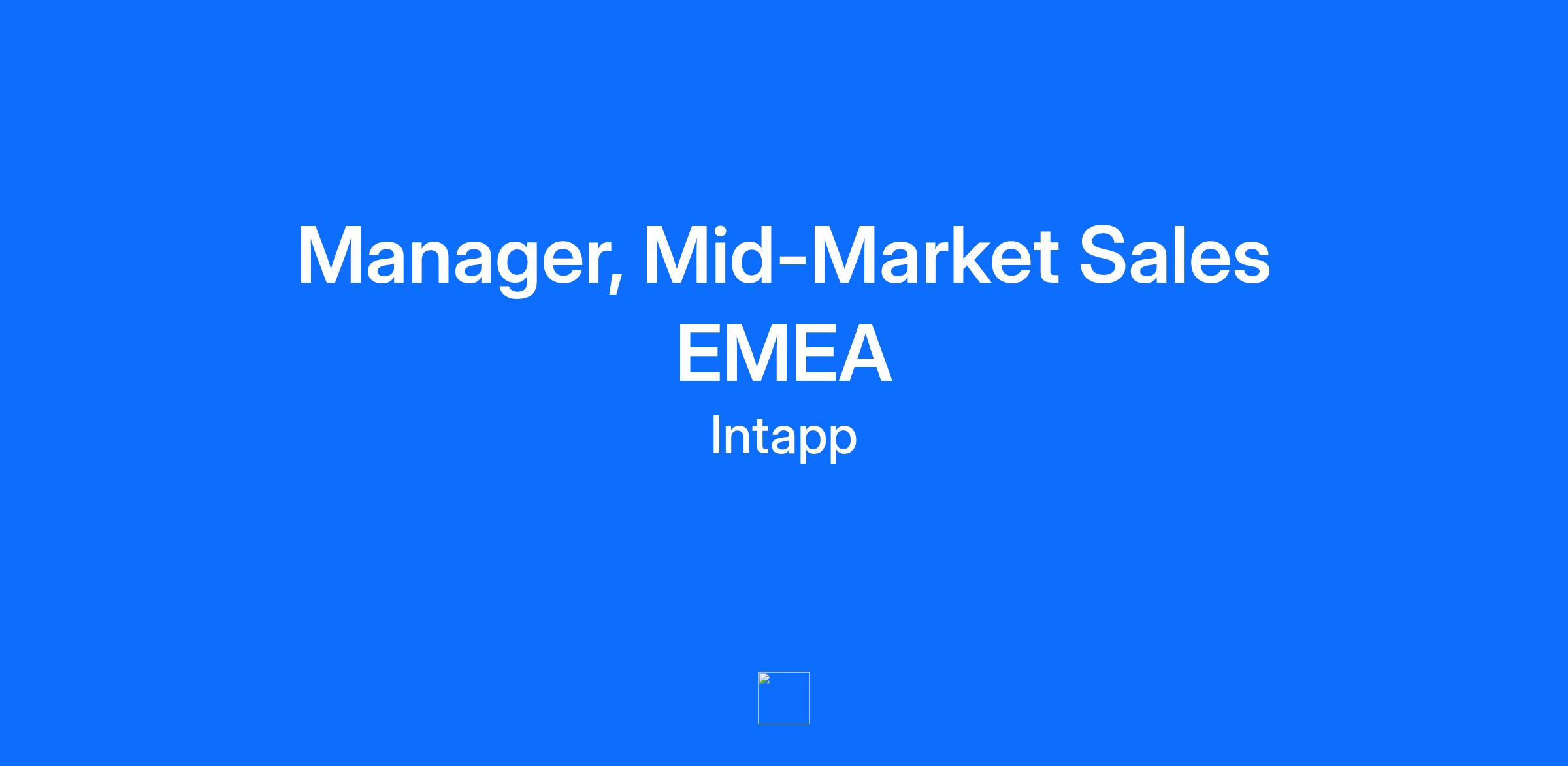 At Intapp we deliver industry-cloud solutions for the financial and professional services markets with an unwavering commitment to becoming the definitive leader in Applied AI. Our industry clouds are collections of cloud software, integration capabilities, and features and tools designed to deliver sector-specific experience, modernized for partners and professionals working in our core markets. Our Industry Cloud Blueprints are built with a collaborative approach, using cross functional teams to deliver a highly relevant configuration of our technology that is differentiated from what is available today from large horizontal software vendors. Intapp is looking for a Sales Manager to lead our EMEA Mid-Market Sales team who will also be part of our Financial Services GTM Leadership team. They will collaborate closely with Intapp leadership and our GTM teams to drive strategy and execution for the Financial Services vertical. The Sales Manager will work closely with other leaders and counterparts across all relevant functions including Intapp’s GMs, sales, client success, product, engineering, alliances, marketing, services, and support groups. They will ensure that all teams are aligned and fully informed with respect to market needs and priorities to ensure Intapp’s Financial Services solutions are best of breed and optimized to succeed in the market. They will lead the regional strategy and directly impact the revenue growth of the Financial Services vertical while ensuring our Industry solutions and Applied AI product strategy continues to set Intapp apart in the marketplace. What You’ll Do: Developing and executing a revenue growth plan for the Mid-Market Segment of the FS EMEA Sales Team. Creating, installing, and executing on the EMEA Mid-Market playbook that will be utilized by all Mid-Market teams members to increase deal velocity, throughput, and closings. Cultivating relationships with the most senior, pedigreed, and accomplished executives of leading EMEA Financial Services firms. Selling to the staff support teams that evaluate, install, and manage technology and business solutions within these firms. Serve as the lead executive Financial Services Mid-Market industry expert in communicating the value proposition to prospective and existing clients and help the go to market team close new business. Build and maintain key executive-level relationships with prospects, clients and partners in the industry to support our strategy and client development. Meet or speak with Financial Services prospective clients on a regular basis to ensure that we are fully aware of issues and opportunities to improve the solution and/or processes. What You’ll Need: Experience in significant executive level role with software firm(s) of scale that serve and sell to the Financial Services industry. Natural leader with experience as a leader in large matrixed organizations where cross- functional indirect influence leadership has been a part of your success. Team player with ability to coordinate work across varied functions and teams to drive alignment. Communicate as needed with engineering, product, and support teams to make sure teams are aligned and working to optimize the solution and related processes. Capability to present value propositions to C-level and board-level executives. Excellent executive written and verbal communication, and presentation skills are a must; this position involves a significant amount of direct executive client interaction. Results-oriented, resourceful, and comfortable working under tight deadlines with demanding internal and external customers. Flexibility to travel globally as needed. What you will gain: At Intapp, you’ll get the opportunity to bring your talents and intellectual curiosity to create better outcomes for our people and our clients. You’ll be part of a growing public company, with a modern work environment that’s connected yet flexible and where your professional growth and well-being are top priorities. We’ll collaborate and grow together, supporting each other in a positive, open atmosphere that fosters creativity, innovation, and teamwork. Here, you will have the opportunity to: Expand Your Skills: Unlock your potential with professional development opportunities supported by a community of experienced professionals. We offer reimbursement for training and continuing education to help you stay ahead in your career. Enjoy Where You Work: Thrive in our modern, open offices designed to inspire creativity and collaboration. Our complimentary lunches and fully stocked kitchens ensure you have everything you need to stay energized throughout the day. Support What Matters Most: Our comprehensive wellness and flexible time off programs and our benefits are designed to care for you and your family. Our family-formation benefits and support during your family-building journey ensure you have the resources you need when it matters most. We believe in giving back and supporting our communities with paid volunteer time off and a donation matching program for the causes you care about. Join us and be a part of a collaborative and welcoming culture where your contributions are valued, and your professional growth is a priority. Together, we are building a company of long-term value that we can all be proud of. #LI-AZ1 Intapp provides equal employment opportunities to all qualified applicants and will make hiring decisions without regard to race, color, sex, sexual orientation, gender identity or expression, religion, national origin or ancestry, age, disability, marital status, pregnancy, protected veteran status, protected genetic information, political affiliation, or any other characteristic protected by federal, state or local laws. Please note: Intapp will not hire through text message, social media, or email alone. We will never extend a job offer unless you have been contacted directly by an Intapp recruiter and have participated in the i