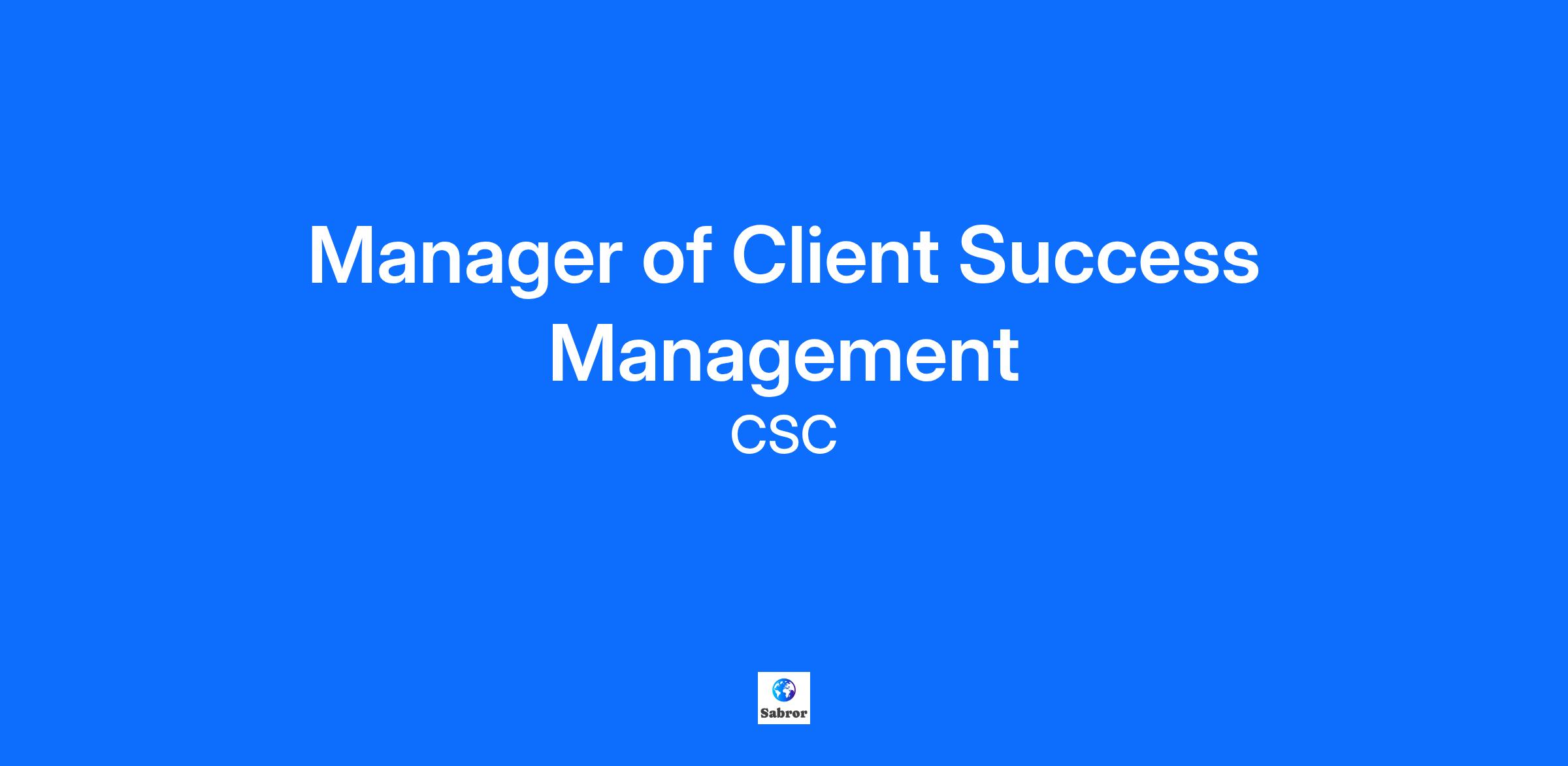 Title: Manager Client Success Management