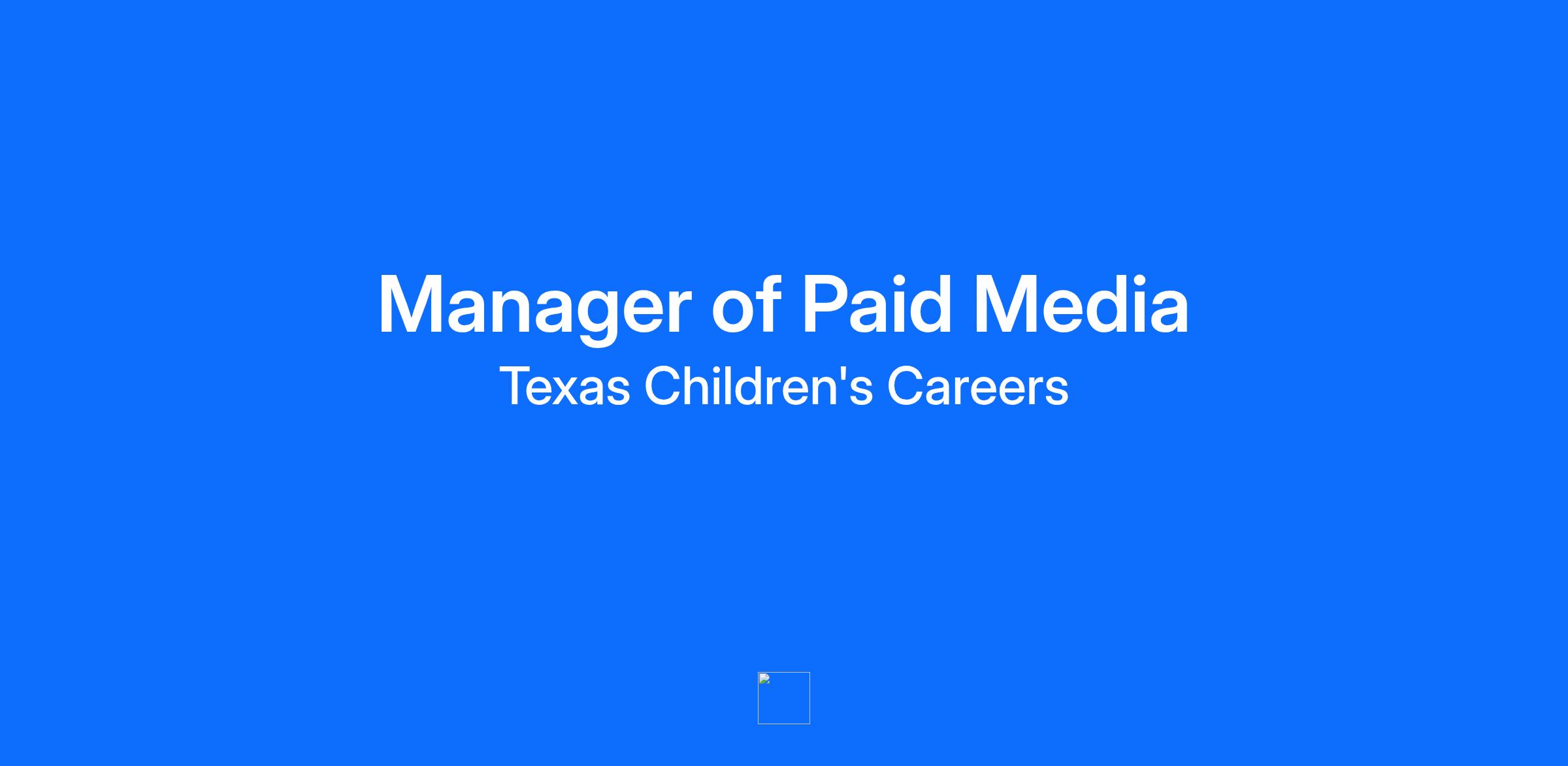 We’re looking for a Paid Media Manager, someone who’s ready to be part of a growing team with amazing opportunities. In this position, you’ll be responsible for leading and executing cross-channel paid media strategies for the organization, including, but not limited to, brand, service line, research, philanthropic, health plan, and Austin market campaigns. This role will plan media across digital and traditional channels, with a required specialization in digital platforms (programmatic, SEO, SEM, social). The Paid Media Manager leads a team of channel specialists, and collaborates closely with internal partners and external vendors while ensuring campaigns are delivered on time, optimized for performance, and aligned with organizational priorities. Think you’ve got what it takes? Job Duties & Responsibilities • Develops integrated media strategies across digital and traditional channels, including programmatic, SEO/SEM, paid social, broadcast & streaming TV, out of home, audio and emerging platforms • Evaluates and negotiates opportunities in local and national markets • Ensures media recommendations align with campaign goals, audience segmentation, creative strategy, and business objectives • Serves as the in-house digital media subject matter expert with hands-on knowledge of programmatic, SEO, SEM, and paid social • Oversees platform strategy, optimization, measurement framework, and performance insights across all channels • Monitors campaign performance and optimizes in real-time for efficiency and effectiveness • Manages, mentors, and supports a team of paid media specialists and coordinators • Collaborates with external partners and internal marketing, brand, creative and analytics/digital teams Skills & Requirements • Bachelor’s degree in marketing/advertising, journalism, healthcare, hospitality/events or related field required • Master’s degree in business administration, health administration, or MS in related field preferred • 5 years of paid media planning and buying experience required • Prior agency and/or healthcare experience preferred • Local and national buying experience preferred