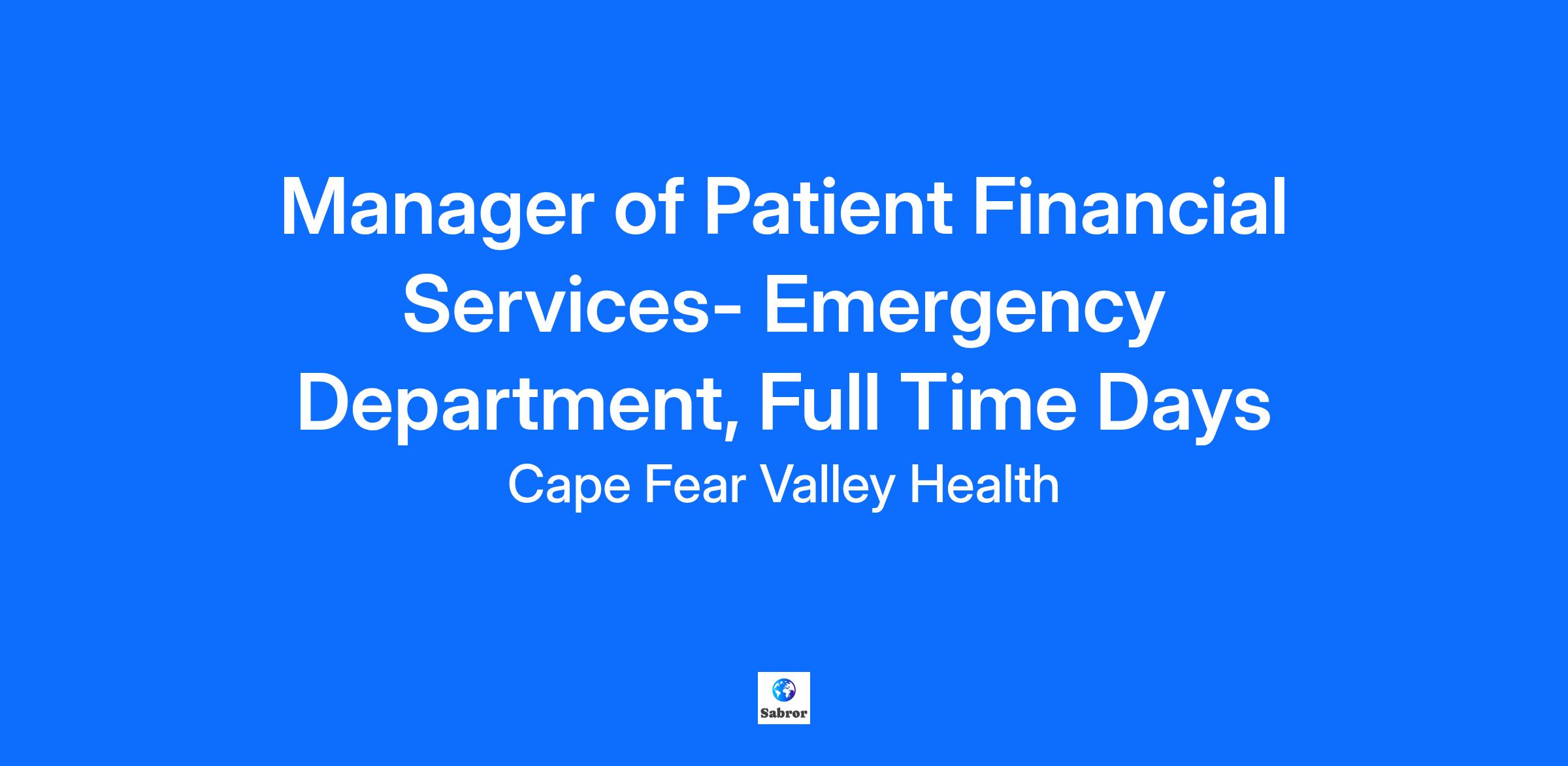 Facility Cape Fear Valley Medical Center Location Fayetteville, North Carolina Department Emergency Department Registration Job Family Management Work Shift Days (United States of America) Summary Responsible for planning, educating, coordinating, and controlling the activities of all admitting, registration, financial counseling, training and scheduling functions within the Medical Center. Primarily concerned with obtaining accurate, complete, and consistent demographic, financial, and clinical data during all registration processes, following up on all scheduled visits that are PFS’s responsibility and managing the authorization and pre-cert process for inpatient and outpatient services.Four to six years Patient Access experience with two to three years in a supervisory position. Must be able to plan, direct, and control Patient Access functions. Must have good command of medical terminology. Must have problem solving abilities. PC experience must include Microsoft Office and Windows. Must be knowledgeable of payer requirements related to Patient Access (CMS, DHHS, BCBS and other Managed Care organizations)Must be able to communicate orally and in writing effectively with patients, doctors, and other departments in the institution. Required Licenses and Certifications Cape Fear Valley Health System is an Equal Opportunity Employer M/F/Disability/Veteran/Sexual Orientation/Gender Identity For exceptional healthcare come to Cape Fear Valley Health where caring employees are committed to integrity, patient-centeredness and excellence throughout the entire healthcare process. At Cape Fear Valley Health, our goal is to improve the quality of every life we touch. Our diverse team of doctors, nurses and staff work together to create a better experience for every patient, every time. Cape Fear Valley is a 950-bed, 8-hospital regional health system, the 8th largest in North Carolina, with more than 1 million inpatient and outpatients annually. A private not-for-profit organization with over 7,000 employees and 850 physicians. Our employees and physicians proudly serve a seven-county region of southeastern North Carolina, including Fayetteville, Fort Bragg, Hope Mills, Raeford, Lumberton, Elizabethtown, Clinton, Lillington, Dunn and beyond. Our medical facilities include Cape Fear Valley Medical Center, Highsmith-Rainey Specialty Hospital, Cape Fear Valley Rehabilitation Center, Behavioral Health Care, Bladen County Hospital, Hoke Hospital, Central Harnett Hospital, Betsy Johnson Hospital, as well as more than 60 medical offices and specialty care clinics spread throughout the Cape Fear region.